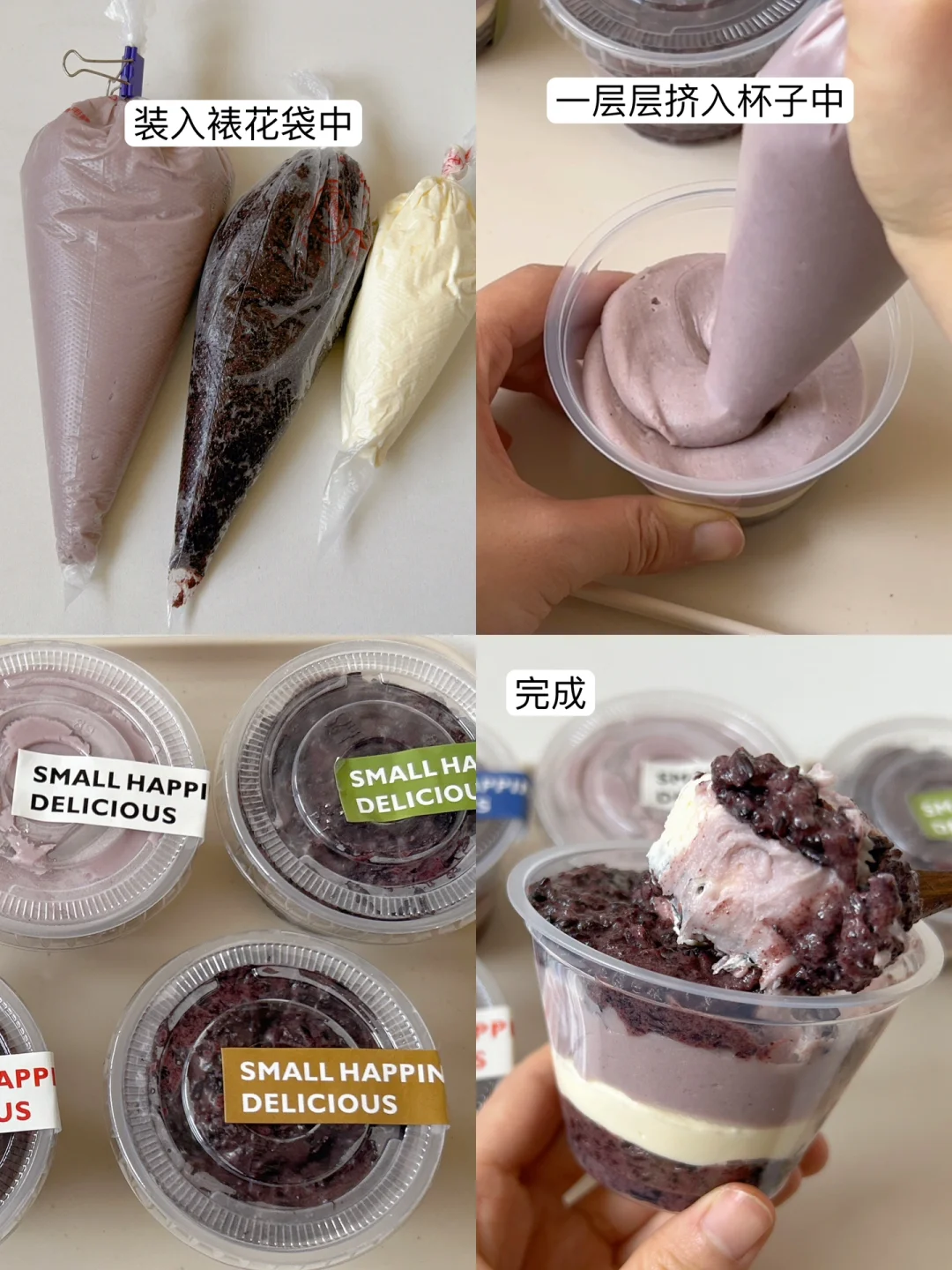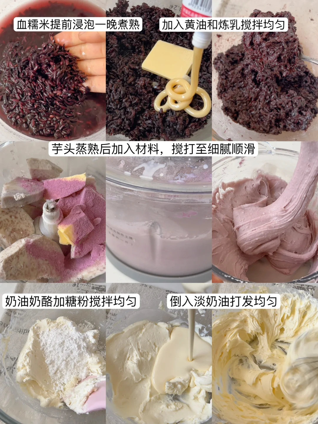 4⃣️一层血糯米,一层奶油奶酪,一层芋泥组装在一起即可
