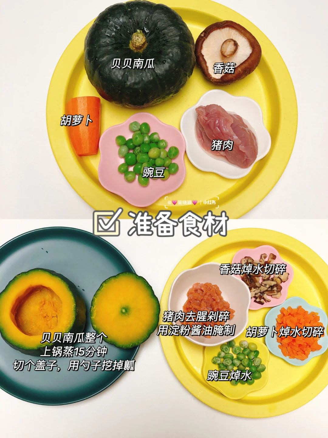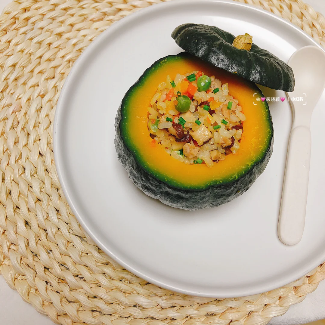 (贝贝南瓜,猪肉,豌豆,胡萝卜,香菇,胚芽米饭)