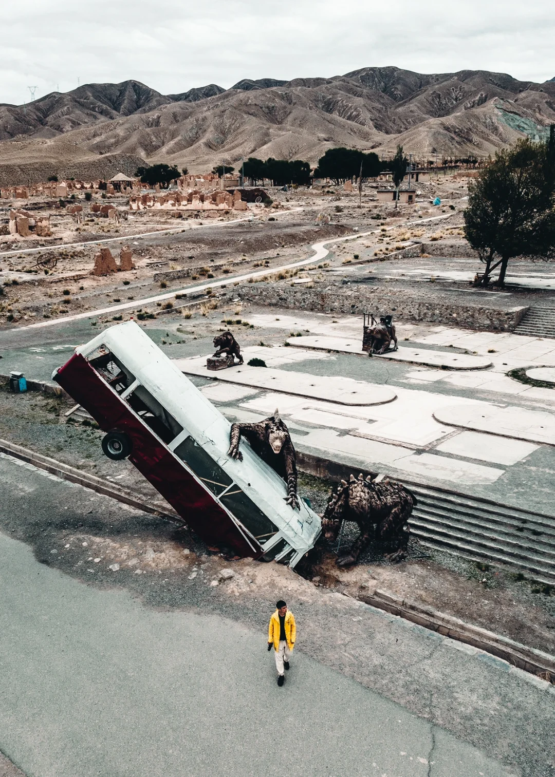 🌟这里是《九层妖塔》的外拍地,电影的剧情,据说是根据1983年石油小镇被袭击事件改编的。这座石油小镇虽然废弃了,但你还是可以从周围废旧的厂房、医院、学校和居民楼中想象到小镇昔日的喧闹景象,现在的石油小镇已经变成了景区。