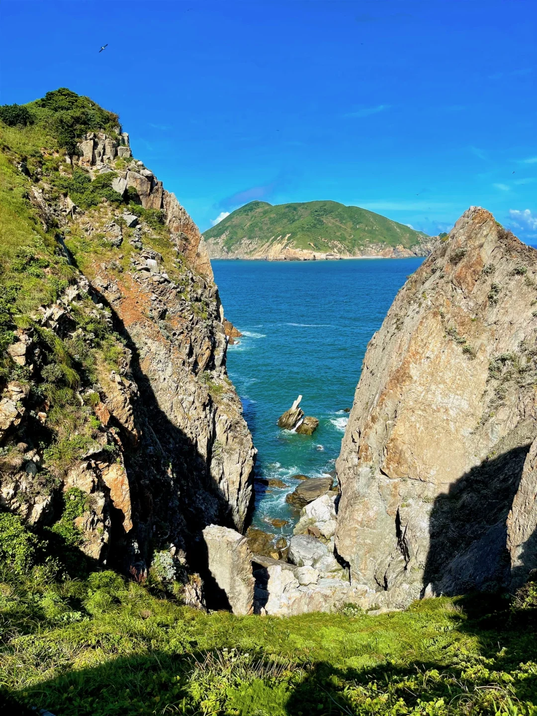 又被称为鸟岛,每年的夏季海鸥成群结队飞来这儿栖息,所以被当地渔民称为鸟岛,这儿的岩石非常特色,有鲨鱼背,犀牛角,象鼻,羊角等,还有临崖边的草坪如同光遇圣岛的场景。
