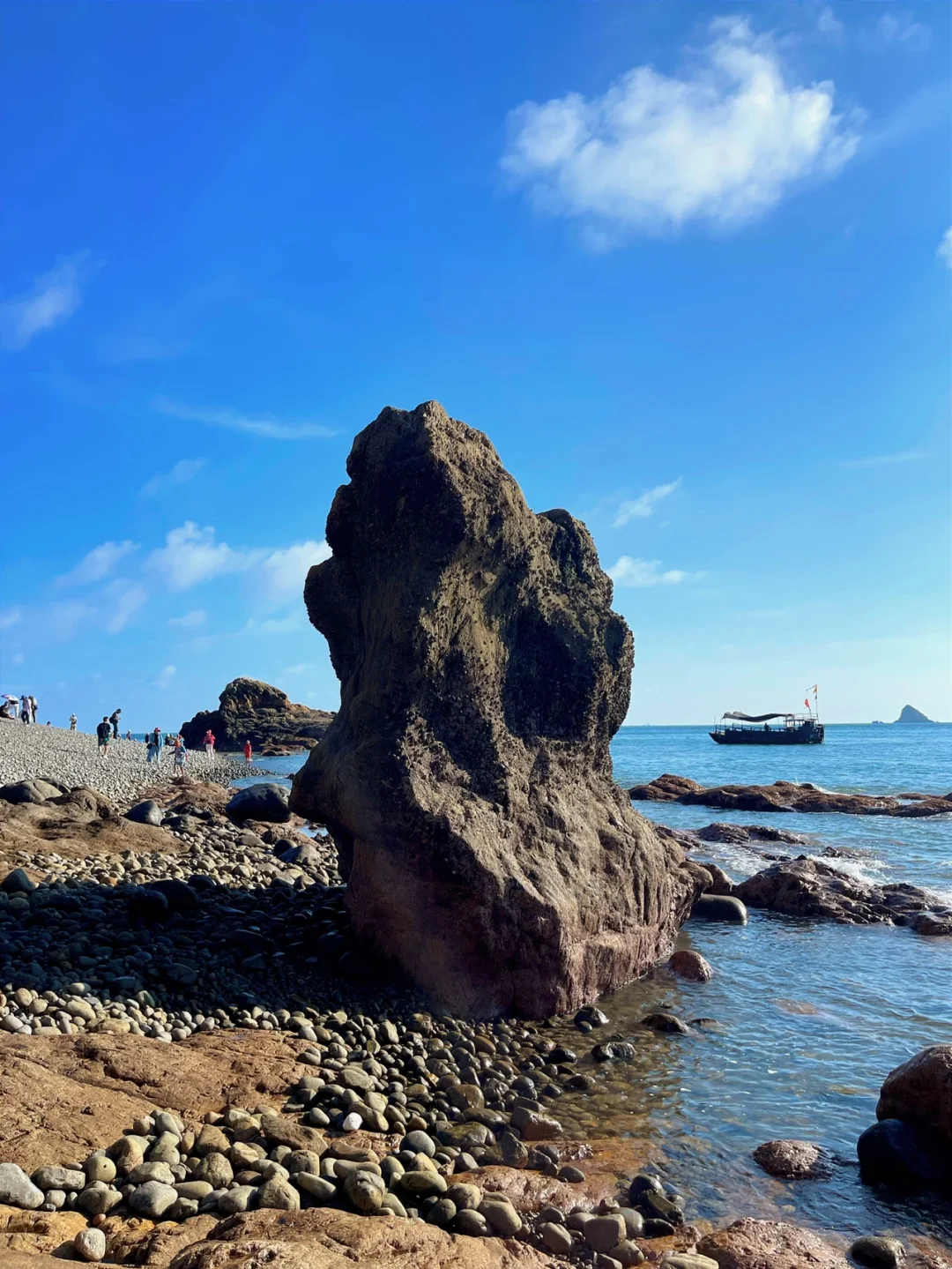 这是一个超大的鹅卵石沙滩,有着1米厚,海水清澈见底,喜欢海游和海钓的伙伴就会来这儿游玩,在岛的对面就是红礵岛,两岛之间相距百米,来到这的游客都会带几颗鹅卵石当纪念。