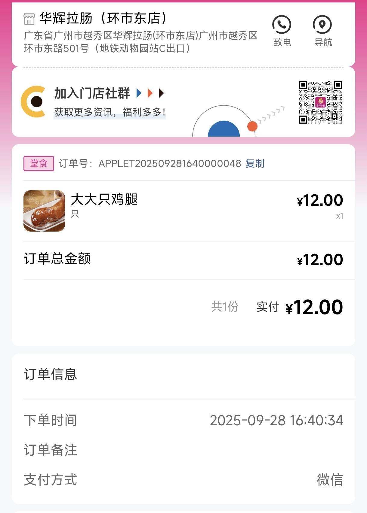 在广州动物园外面有一间华辉拉肠,我点了一碗金汤牛肉米线,吃的时候才知道是麻辣的,根本就吃不下去,看着没有辣椒🌶️,我以为不是辣的,谁知道是麻辣的,我点的鸡扒是生的,打包带走了。后来又点了一只鸡腿,鸡腿还可以,是熟的。