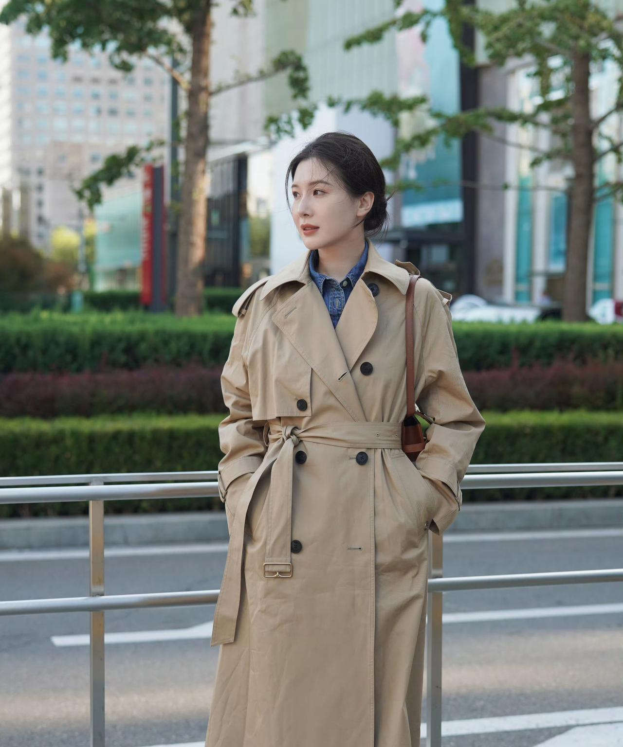 卡其色风衣与牛仔的邂逅,是都市里最温柔的铠甲。她在街角驻足,在咖啡屋浅笑,每一次