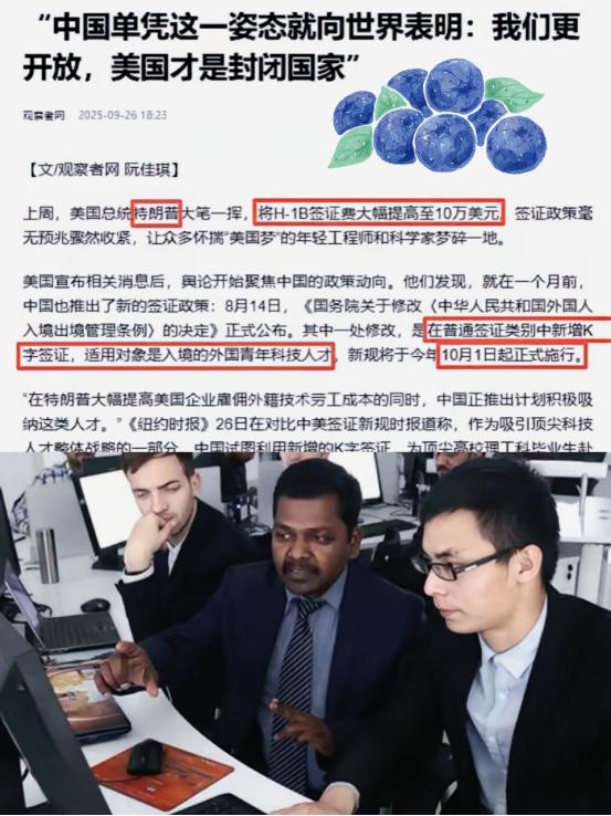 中国将从10月1日起正式实行K签证政策,目的是吸引来自全球的高端人才。可巧的是,美国突然把H-1B签证的费用提高到10万美元,这一下,原本冲着美国去的人,很可能会把目标转到我们这边来! 人才争夺战从来不是靠政策口号喊出来的,而是实打实的发展路径较量。 先说说美国这步棋有多别扭。H-1B本来是硅谷抢全球技术人才的老法宝,每年多少印度、中国留学生就指着这张签证留美工作。 现在突然要收10万美元,官方说要筛"真正的高端人才",可实际呢?美国商会直接跳出来反对,说中小科技公司根本扛不住——要知道硅谷那些刚起步的初创公司,招个初级工程师年薪也就二十来万,10万美元签证费相当于半年工资砸进去,谁受得了? 更有意思的是,连美国本土高校的留学生都被坑了,不少斯坦福、麻省理工的STEM毕业生,本来都拿到企业offer了,一看这笔签证费直接打了退堂鼓。 更扎心的是H-1B本身早就成了"抽奖游戏",2025财年47万人抢6.5万个普通名额,再加上2万个硕博名额,抽中概率比中彩票高不了多少。 现在又加了10万美元"入场费",等于直接把中小公司和普通技术人才拦在门外。可美国科技业的根基不光靠谷歌、苹果这些巨头,更多是靠成千上万的初创公司搞创新。 这下好了,巨头不差钱能接着抢人,小公司只能眼睁睁看着人才流走,难怪商界骂这政策"脑子进水",说它"严重破坏了人才流动的生态"。 再看中国这边的K签证,路子就野多了,不搞漫天撒网那套,直接盯着科学、技术、工程、数学这几个硬骨头领域的年轻人。斯坦福那个研究员说得实在,这就是"挑着自己需要的人来"。 比如国内现在新能源电池研发缺人,K签证就对材料科学专业的博士放宽审核;半导体行业卡脖子,芯片设计和制程工艺人才来了就能享受到安家补贴,深圳那边甚至能给到百万级。 而且不是光给签证就完事儿,还得看你是不是真干活——续签的时候不看你在中国待了多久,要看你参与了什么项目,出了什么成果,像那种想混个身份的根本没戏。 这种打法其实是摸透了现在年轻人的心思。现在的STEM毕业生选工作,不光看工资,更看能不能搞出点实在东西。 最近留学咨询机构的数据就很说明问题,咨询K签证的美国留学生环比涨了两倍,80%都是计算机、电子工程这些硬专业的,不少人直接放弃了H-1B的抽签机会,"反正抽中概率低,还不如去中国试试,至少能实实在在做事"。 有人担心K签证会不会像之前有些政策那样出现造假?其实从一开始就堵上了漏洞。申请的时候要提供SCI论文、专利证书这些实打实的成果,比学历证书难造假多了。 而且审核团队里有不少行业专家,你提交的科研项目是不是真东西,一搭眼就能看出来。之前香港高才通出过虚假学历的问题,内地这边直接吸取教训,所有材料都要在线验证,连工作经历都要跟之前的雇主核实,想蒙混过关门儿都没有。 现在市场反应已经很明显了,美国H-1B申请量自费用上涨后跌了30%,而K签证预约系统刚上线就被挤瘫痪了。 这种人才流向的变化,不是靠政策宣传拉来的,而是靠实打实的发展机会吸引来的。 说到底,美国靠涨价筛人才,本质上是对自己的产业竞争力没信心了,觉得只能靠钱来划线;中国搞精准引进,是摸准了自己要走的路,知道哪些人才能帮着突破卡脖子难题。 人才这东西跟水一样,哪里有适合生长的土壤就往哪里流。美国要是还抱着"老子有钱就能买人才"的老想法,只会把更多年轻人推到中国这边来。 毕竟对真正想干事的人来说,能让自己的技术落地生根,比什么都重要——这大概就是这场人才博弈最实在的胜负手。