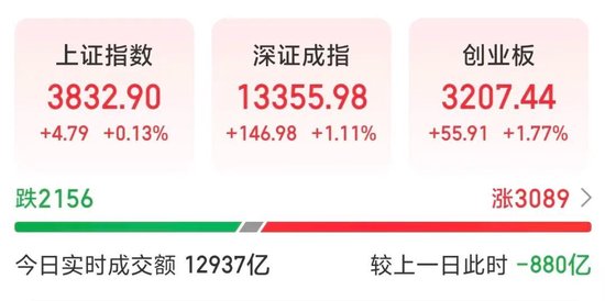 截至上午收盘,上证指数上涨0.13%,深证成指上涨1.11%,创业板指上涨1.77%。