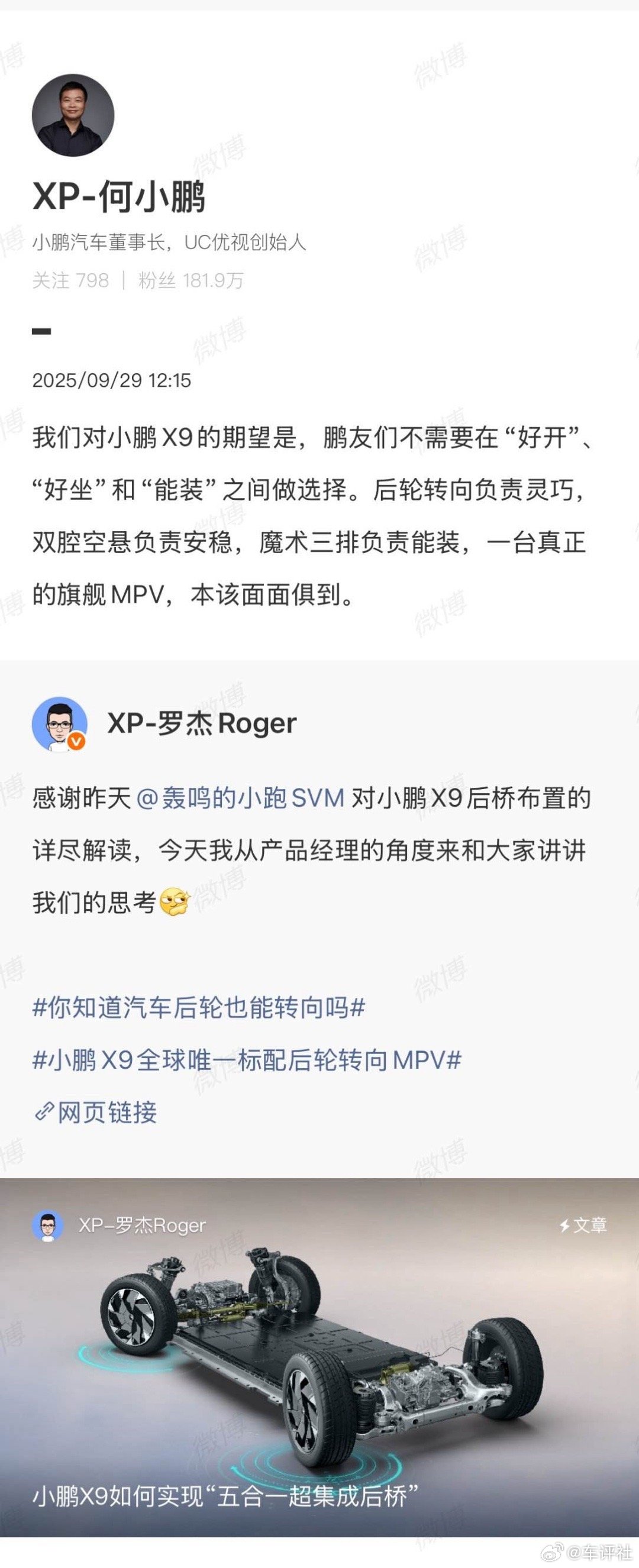 小鹏X9全球唯一标配后轮转向MPV你知道汽车后轮也能转向吗