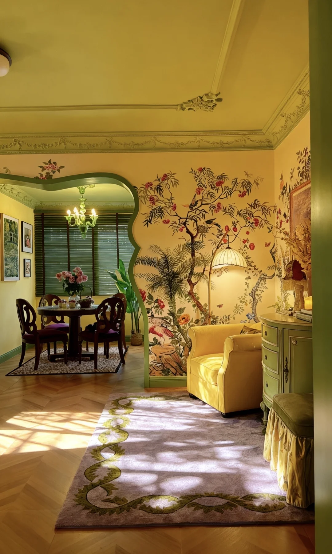 装修半年的旧房,终于装出了梦想中的极繁复古童话感! 满墙绿植墙纸像闯进《小森林》 阳光洒下来超治愈~ 多巴胺色系实木家具撞色花花窗帘 每处都藏着小惊喜 在湖南的阴雨天里 推开家门就像掉进宫崎骏的动画里 幸福感直接拉满![萌萌哒R][萌萌哒R][萌萌哒R]