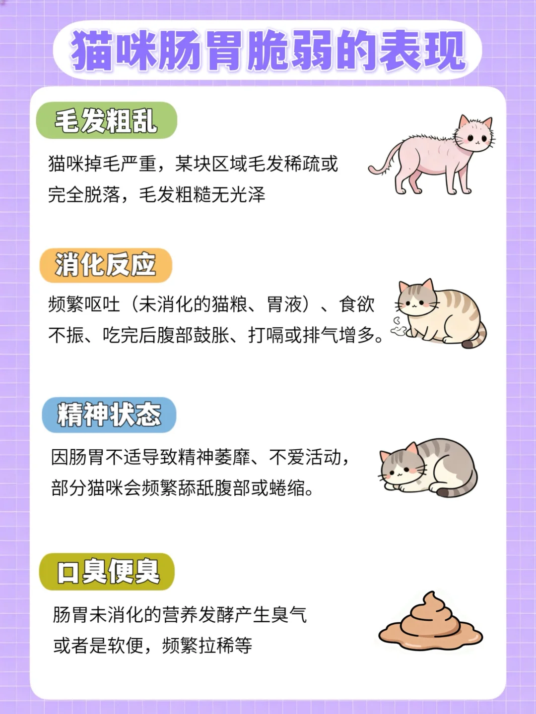 ⚠️很多铲屎官发现猫咪吃得多却不长肉,还频繁软便拉稀,核心原因一定是肠胃消化吸收出了问题,或者是猫粮里的成分不耐受(比如谷物、劣质添加剂❌)。