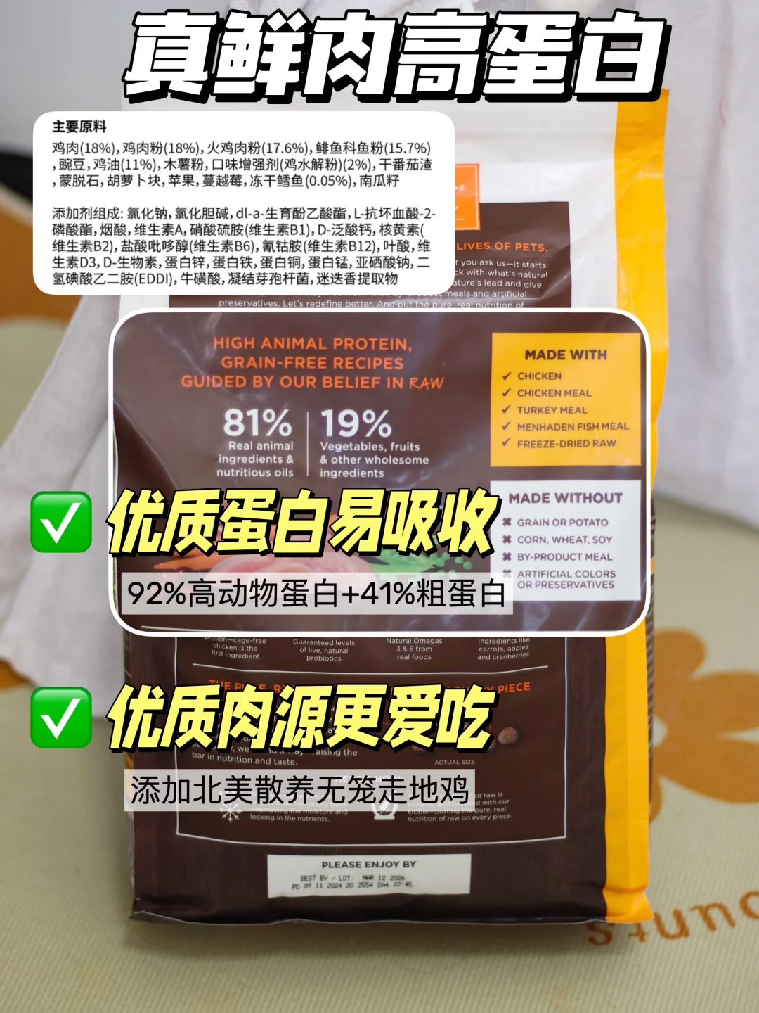 😻92%动物蛋白+41%粗蛋白:高肉含量+优质易消化的鸡肉蛋白,能让身体高效吸收,猫咪吸收好才会圆嘟嘟~