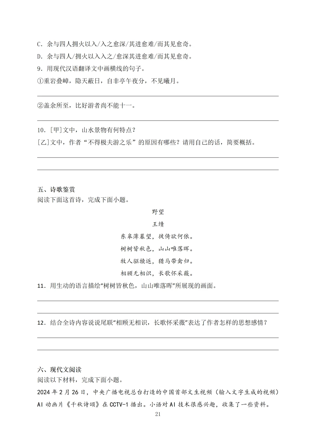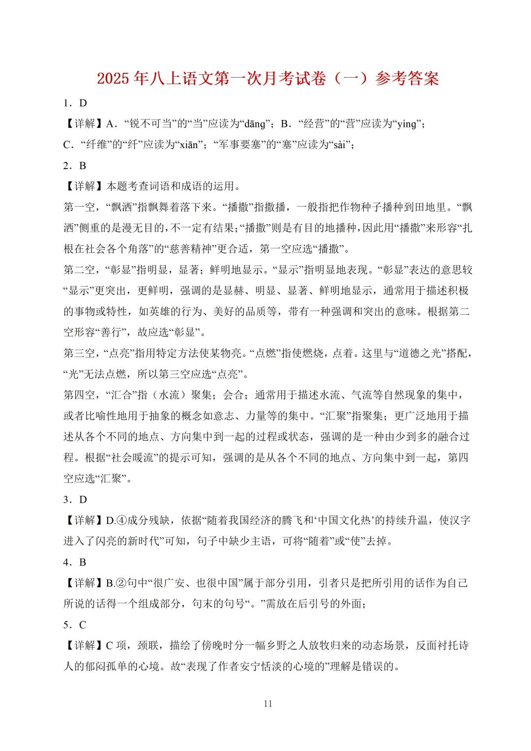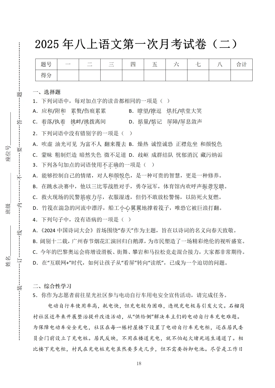 [皱眉R]最近好多家长问我:“老师,有没有八上语文第一次月考的试卷啊?娃马上要考了,想让他练练手”🙋️