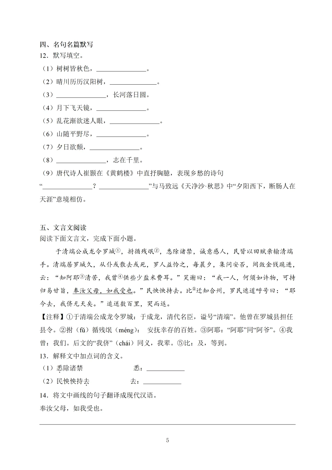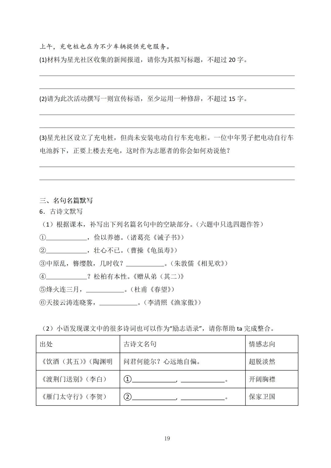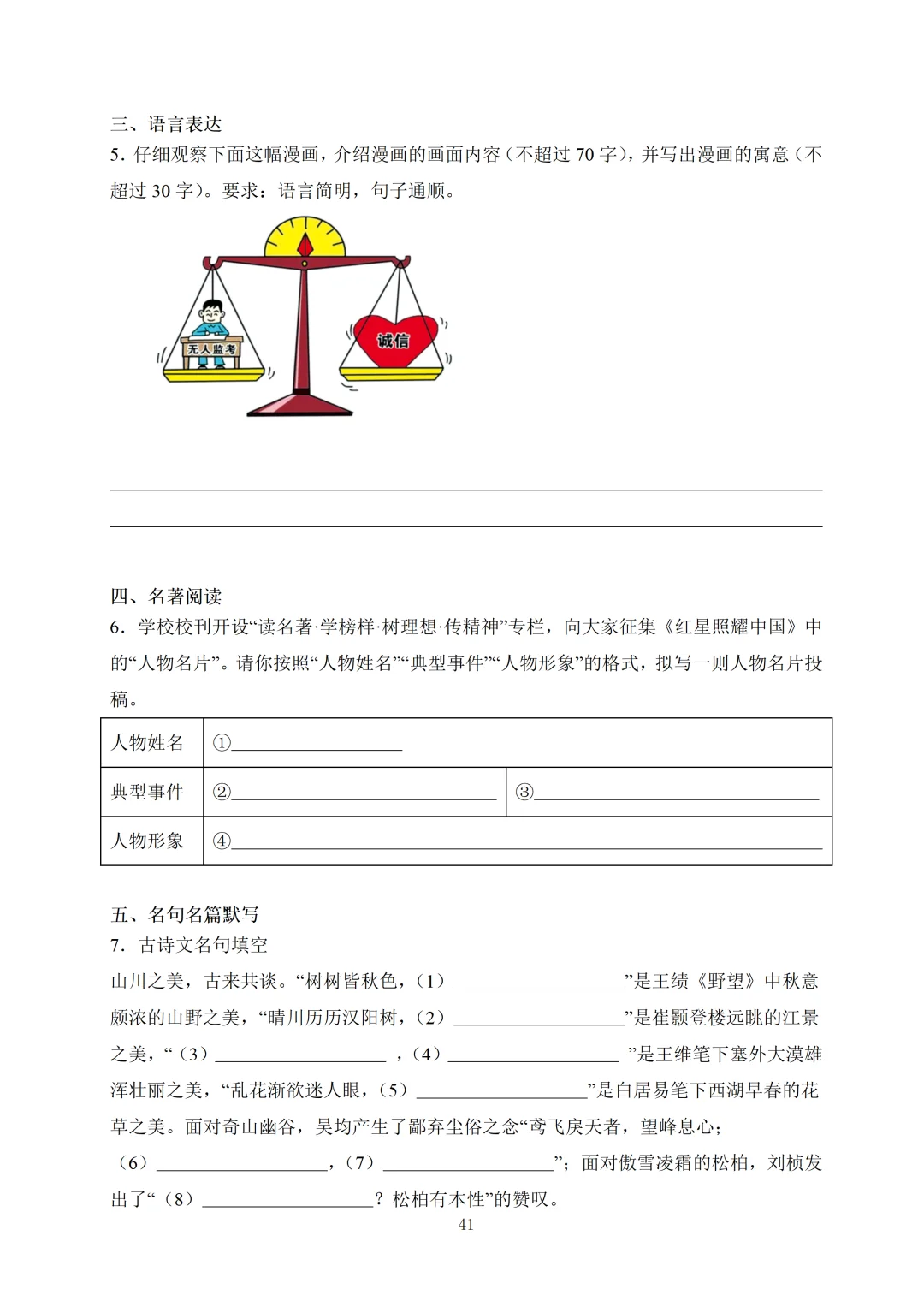 6大板块完整覆盖:基础板块、古诗词默写和赏析、文言文阅读、名著阅读、阅读理解和作文,每个板块都是基础难度。