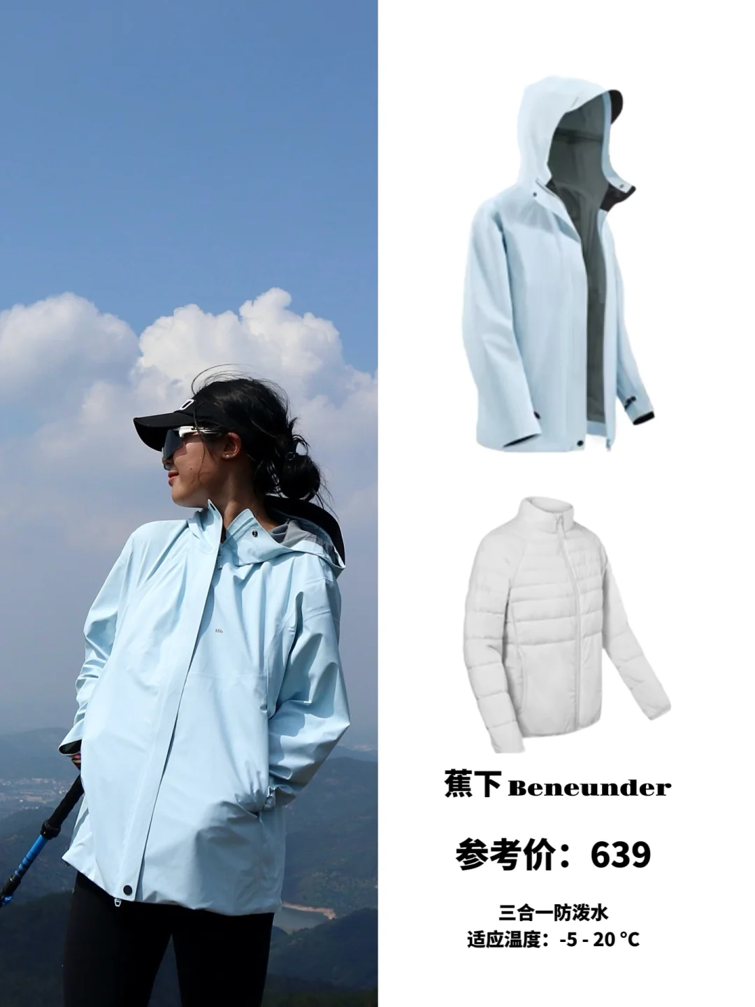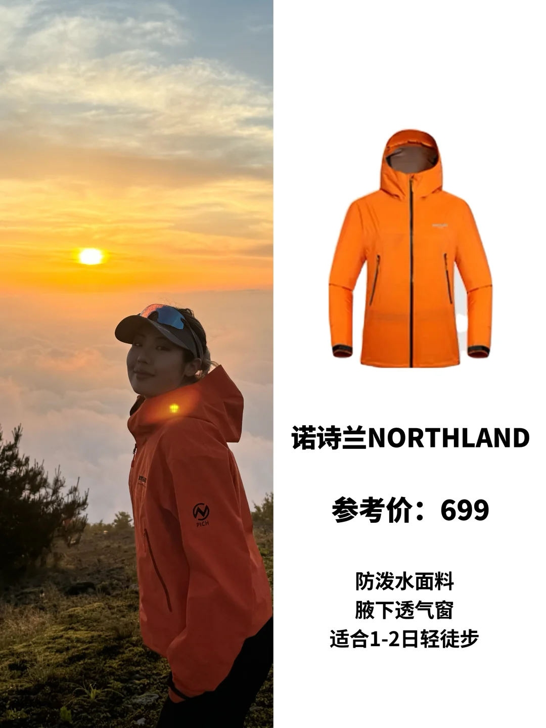 💰500-1000: 诺诗兰NORTHLAND、蕉下,这个价格区间基本可以满足温度-5 °C以上绝大多数非极端气候的徒步行程了