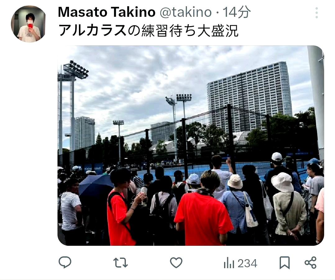 2-0!辛纳太稳了!首盘6-1横扫,第二盘化解危机翻盘,晋级四强同时轻松拿下赛季第40胜。 辛纳6-1/7-5马洛桑,辛纳连续四年晋级中网四强。可惜现场观赛球迷不多,即便他是头号种子,炙手可热的大满贯得主。而阿卡在东京的赛前训练,外面都挤满了球迷(图三)。 阿卡没来中网,看来今年药加辛又要猴子称霸王了……