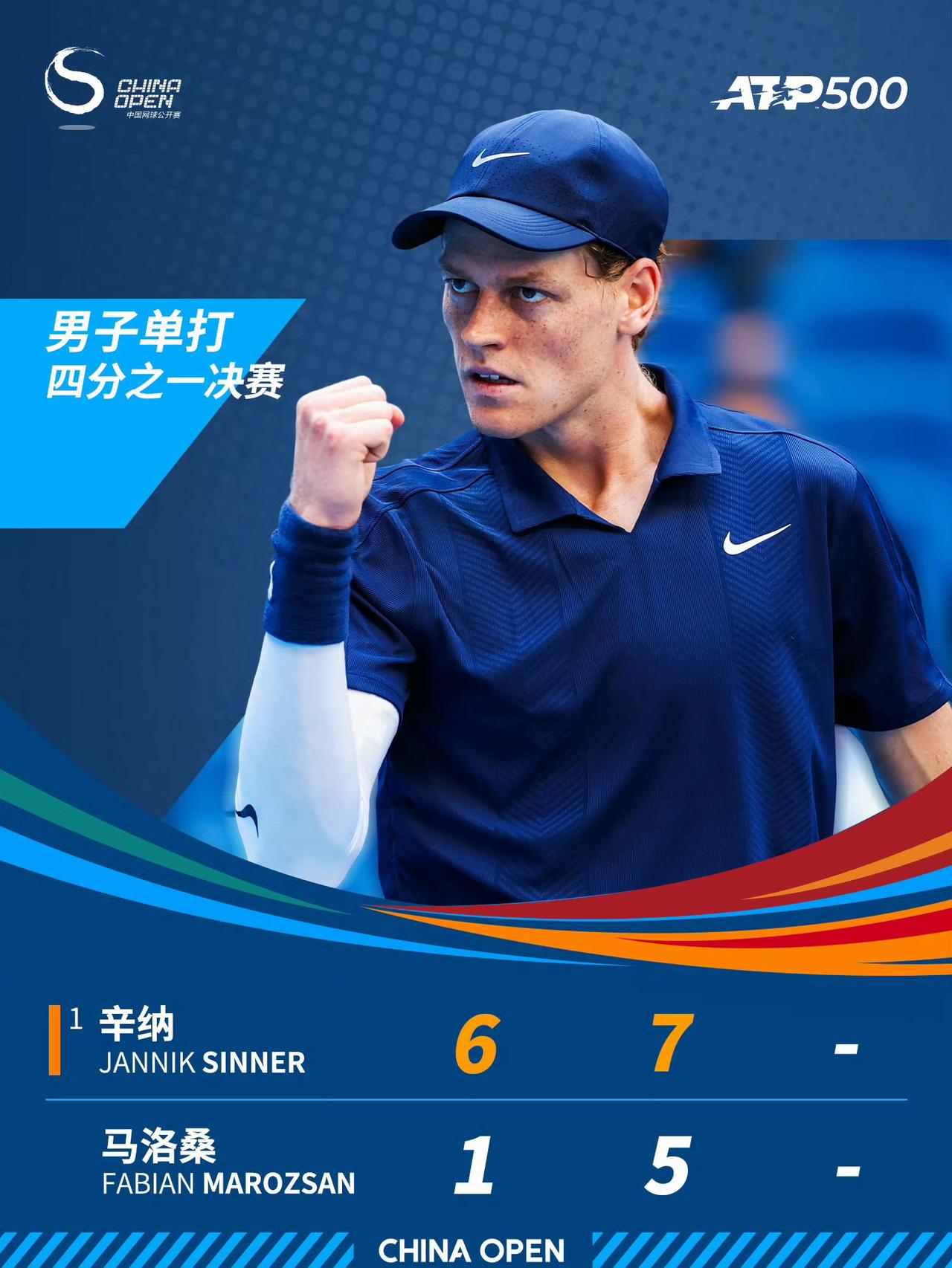 2-0!辛纳太稳了!首盘6-1横扫,第二盘化解危机翻盘,晋级四强同时轻松拿下赛季