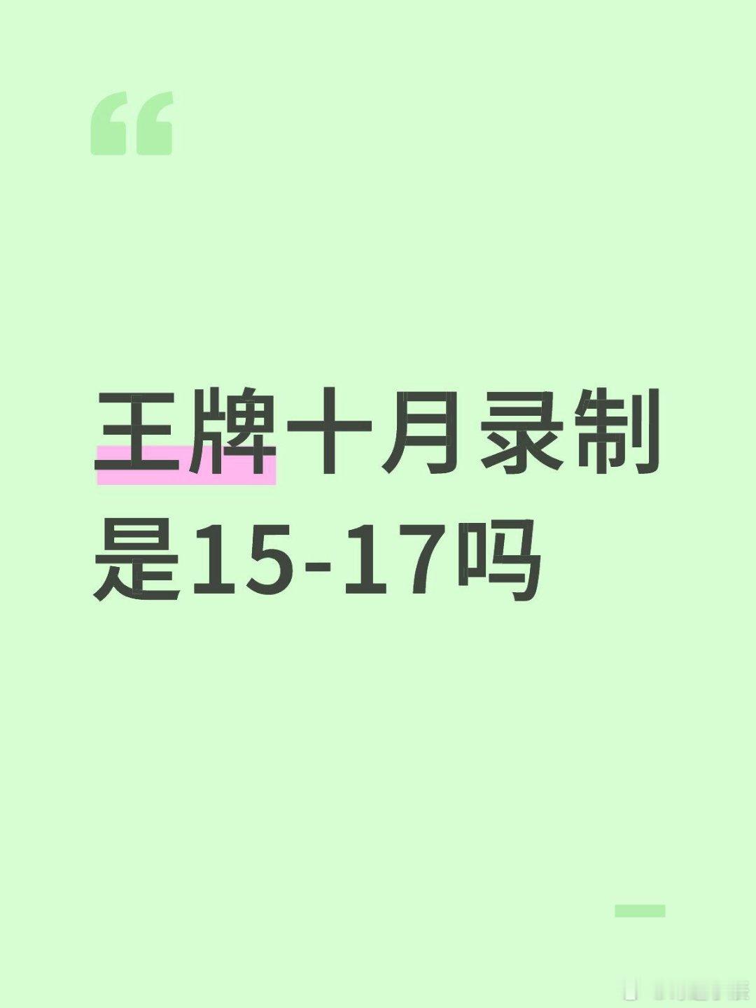 王牌十月录制是15-17吗王牌对王牌9‖王牌对王牌[超话]