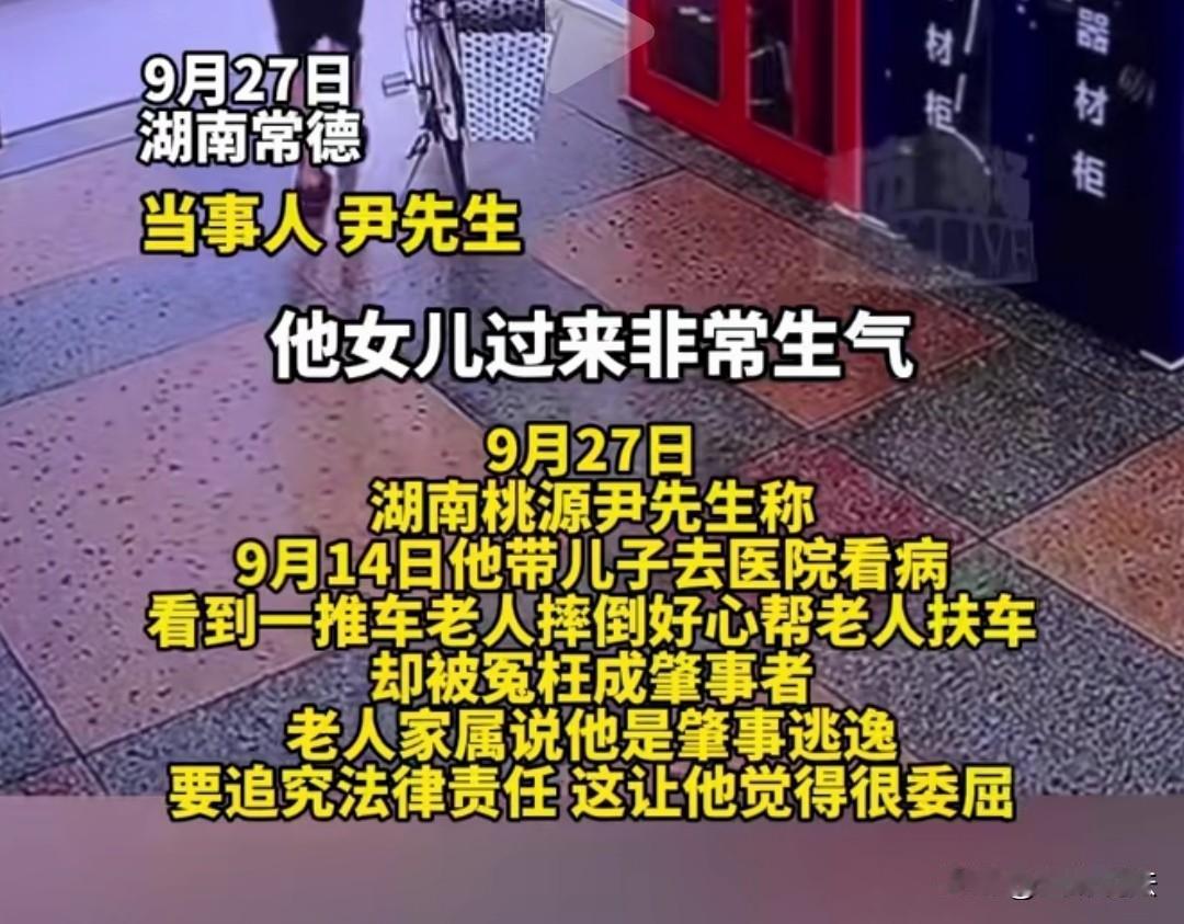 湖南常德,一男子看到推着自行车的老人摔倒,出于好心帮老人把自行车扶起来,后来看到有人来了,他急着看生病的儿子,于是离开了,结果老人说是男子撞的他,其家属要求男子赔偿3万元并追加刑事。 尹先生接到交警的电话,说有人报警,他撞了老人后逃逸。 尹先生脑袋嗡嗡的,他什么时候撞了老人,倒是帮了一个老人扶起自行车,难道真是应了那句“不是你撞的你为什么要扶?” 尹先生不想把事情想得这么坏,可当得知正是自己帮忙扶起自行车的那位老人家属时报警时,他感到非常心寒。 他想起那天事情的经过,他不知道自己是不是做错了,可他知道再次遇到这样的事情,他也许还会帮忙,但是要先证明老人摔倒和自己没有关系。 9月14日那天,尹先生的儿子感冒严重,他骑着摩托车带孩子来医院,当时其他家属带孩子先去挂号,他找地方停车。 他把摩托车停在了医院后门不远处,停好车后就从后门进去,在他准备到门口的时候,一位老人推着自行车与他擦身而过。 尹先生刚走上楼梯,突然听到哐啷一声,并伴随着呻吟声,他赶紧转身跑出去,看到老人和自行车摔倒在地,尹先生就扶起自行车,想着一会再把老人扶起。 正当他扶自行车时,有人来了,他看着那人要扶老人,想着自己的孩子感冒严重不敢耽搁,于是就离开了。 结果没有想到,老人却说是尹先生撞了他,老人的女儿要求尹先生赔偿3万医药费,还要尹先生付刑事责任。 尹先生解释他没有撞老人,是老人自己摔倒,他当时还帮忙把自行车扶起来。 看着老人女儿如此生气,尹先生觉得很委屈,向其喊到:你可以问问你父亲到底是不是我撞的? 尹先生以为,他帮忙了老人,只要老人不糊涂,老人回解释他的清白,可老人女儿的一句话他寒心了,老人女儿说,就是老人说尹先生撞的他。 尹先生有口难辨,本来想通过监控来证实自己的清白,可老人摔倒的地方是监控盲区。 而更巧的时候,老人摔倒的时候自行车划到了尹先生的摩托车,老人家属要求做痕迹比对,并以此为证据认定自己是肇事逃逸。 种种证据对尹先生非常不利,面对老人和其他人的质疑,尹先生内心河南崩溃。 可自己是清白的,病没有撞老人,他要为自己自证,也相信自己会被眷顾。 好在经过10多天的努力,尹先生去医院观察发现,正对医院后门有个监控可证明自己的清白,从监控中可以看到,尹先生和老人只是擦身而过 。 尹先生找了老人家属,给他们看了事发当时的监控,结果他们看了监控后说句对不起就走了。 就轻飘飘一句对不起,他们就以为可以抵消他们的诬陷了?尹先生表示,自己提心吊胆十几日,希望他们能公开道歉,还自己清白。 27日老人家属称,因证据不足,不再追究尹先生相关责任。 那么,从法律角度应该如何看待这件事呢? 1、老人的家属说是尹先生撞的老人,想要他承担相应责任。而尹先生表示他并没有撞老人,而是帮助老人 ,在这种情况下,老人家属需要拿出证据证明是尹先生撞的老人。 《民事诉讼法》第六十七条规定:当事人对自己提出的主张,有责任提供证据。 老人家属指认尹先生为“肇事者”,则需要提供证据证明尹先生存在碰撞老人、导致其摔倒的侵权行为。 而尹先生提供监控视频自证清白后,家属方无法提供相反证据,其主张便无法得到法律支持。 2、《民法典》第一千一百六十五条规定:行为人因过错侵害他人民事权益造成损害的,应当承担侵权责任。 监控视频显示,尹先生摩托车和老人自行车无接触,这直接证明了尹先生没有实施侵权行为,不存在法律上的过错,因此不应承担侵权赔偿责任。 3、反倒是老人,明明是他自己摔倒的,可他却告诉家属是尹先生撞的他,其家属要求尹先生赔偿3万,这样的行为很可能构成敲诈勒索行为。 《治安管理处罚法》第四十九条规定:敲诈勒索或者故意损毁公私财物的,处五日以上十日以下拘留,可以并处五百元以下罚款;情节较重的,处十日以上十五日以下拘留,可以并处一千元以下罚款。 虽然家属最终道歉,但其先前索要3万元的行为已具有敲诈勒索的特征,公安机关可以根据情节严重程度决定是否进行行政处罚。 尹先生的行为属于值得提倡的见义勇为,老人和其家属不应该这么做,这无疑是寒了尹先生的心,希望老人和其家属向尹先生道歉。 对于此事,您怎么看?