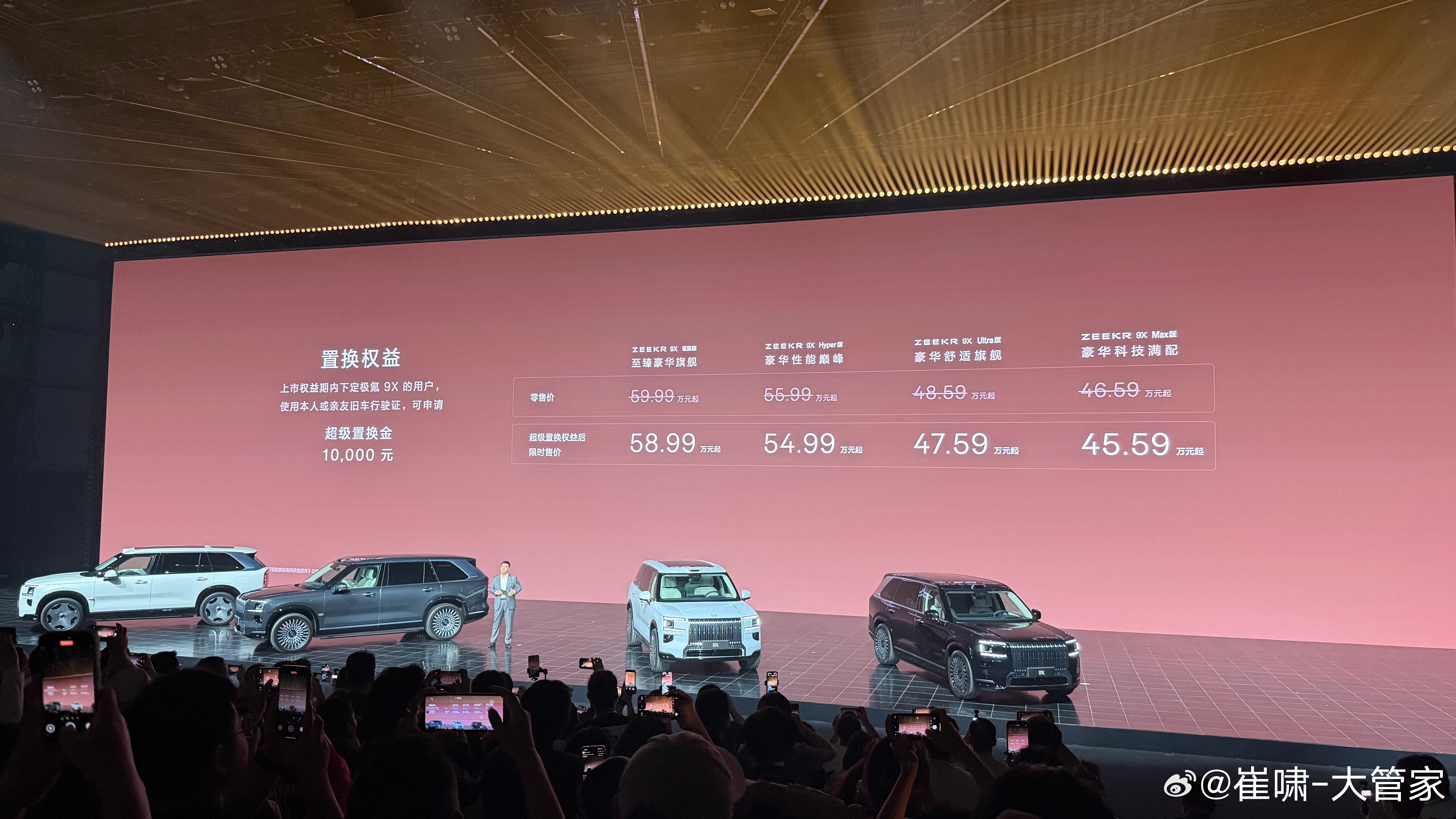极氪9X价格公布!59.99/55.99/48.59/46.59万元。限时置换