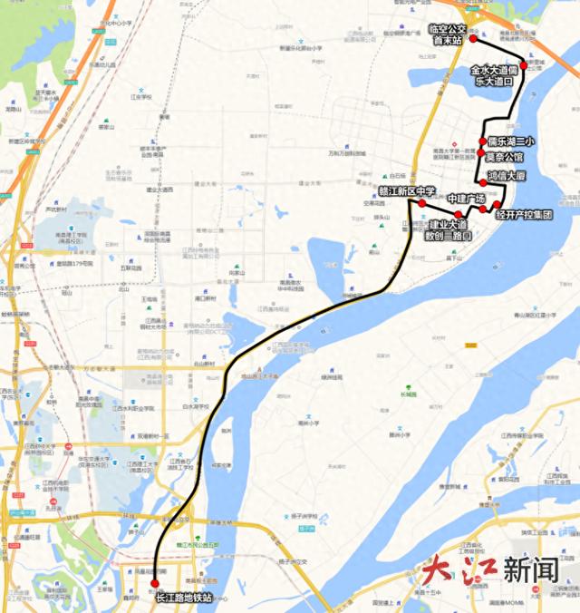 停靠站点:临空公交首末站、金水大道儒乐大道口、儒乐湖二小、莫奈公馆、鸿信大厦、经开产控集团、中建广场、建业大道数创二路口、赣江新区中学、长江路地铁站;
