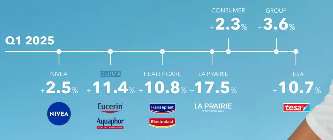 与 La Prairie 莱珀妮相反的是,集团旗下核心品牌妮维雅NIVEA则表现持续强劲,一季度录得2.5%的有机销售增幅,2023年和2024年分别大涨16.2%和9.0%,2023年收入成功突破50亿欧元,是护肤品行业规模最大的品牌之一。