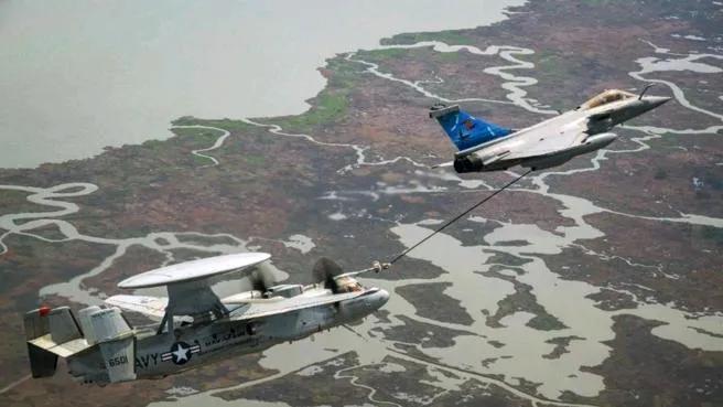 军闻网站「The Aviationist」27日报道,美国海军近期与法国国防部合作,利用E - 2D「先进鹰眼」预警机,首次与法军「飙风」战机、A330 MRTT加油机、A400M运输机开展空中加油行动。通过验证相关战技,帮助法军提前熟悉E - 2D的执勤与作业经验。