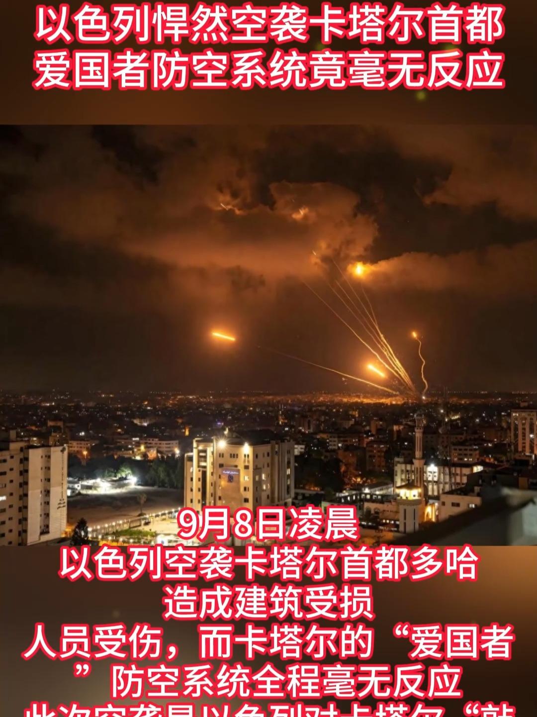 9月30日,据央视早间新闻报道,当地时间9月29日,以色列总理内塔尼亚胡在与卡塔尔首都穆罕默德、美国总统特朗普三方电话会议中,以色列总理内塔尼亚胡就9月9日轰炸卡塔尔首都多哈导致1名安全人员死亡进行正式道歉认错,并承诺不再针对卡塔尔发动类似袭击。 昨天,卡塔尔首都称,只有以色列总理内塔尼亚胡承认错误,卡塔尔才能重启加沙停火调解机制。 评论,这是以色列总理内塔尼亚胡首次向卡塔尔公开认错了!证明卡塔尔影响力不可忽视。 美国炸伊朗、也门、黎巴嫩、叙利亚、伊拉克都没有认错,充分证明卡塔尔在中东地区的位置十分重要。