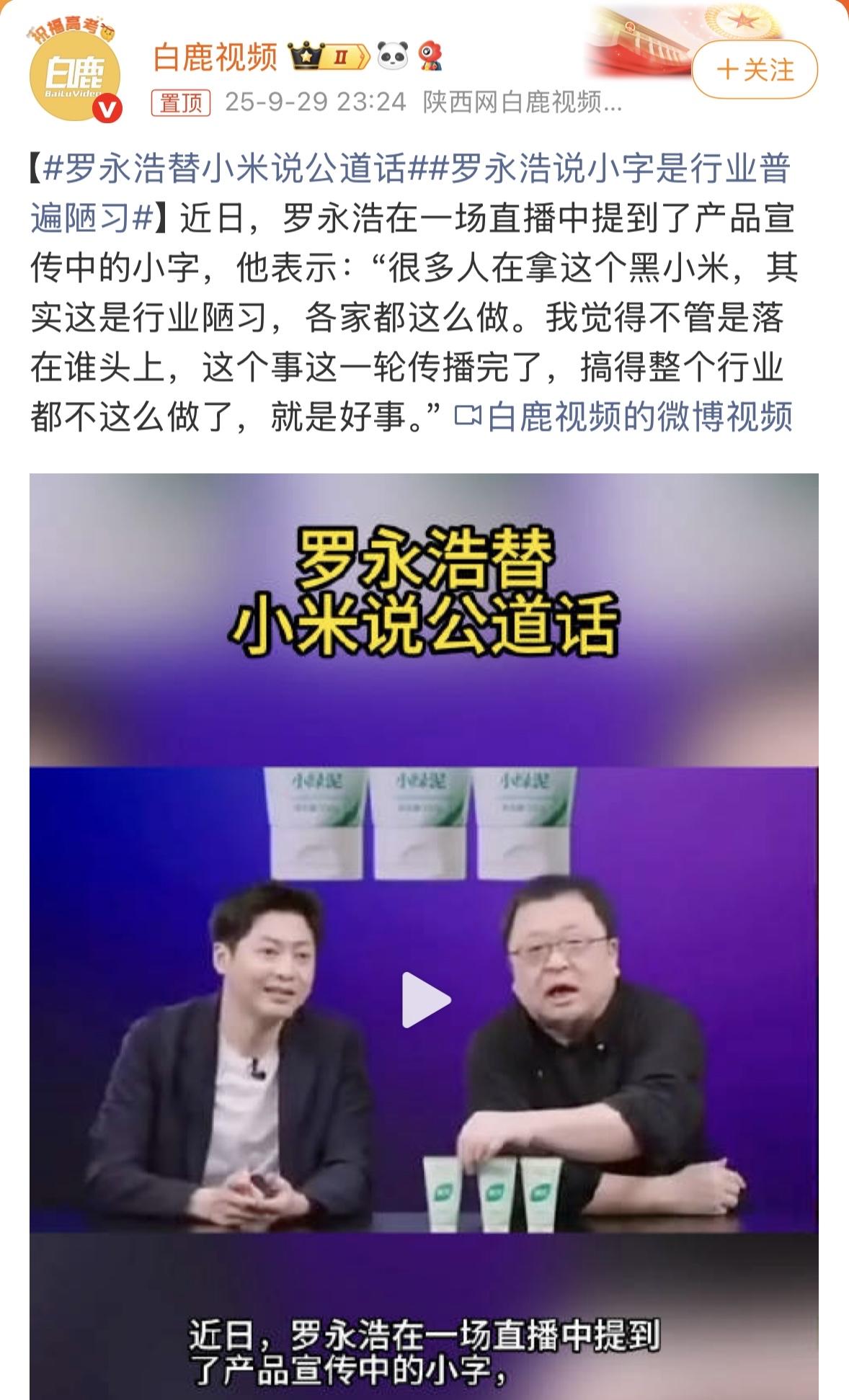 罗永浩替小米说公道话罗永浩说的没毛病……宣传海报标注小字,普遍都这么做[允悲]