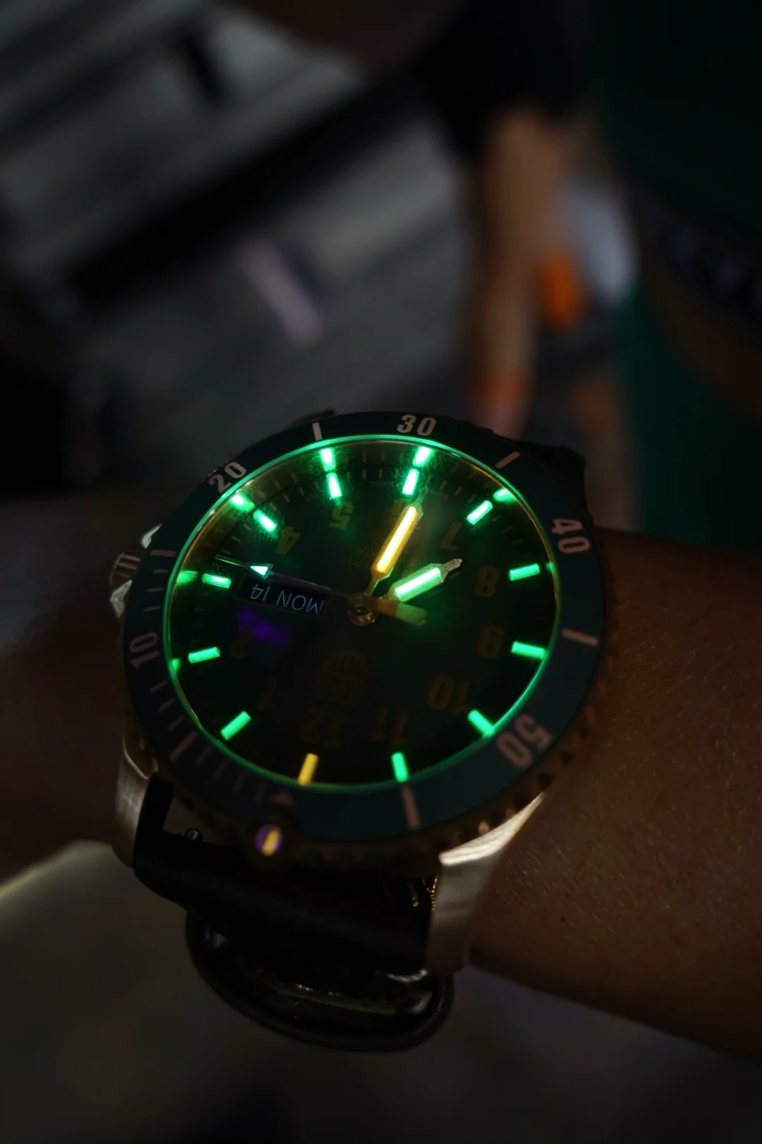 ✅ **氚气自发光LLT技术**:表盘像装了微型路灯,伸手不见五指的洞穴里都能秒读时间!重点是不用充电,直接亮足25年!夜跑潜水再也不怕抓瞎~