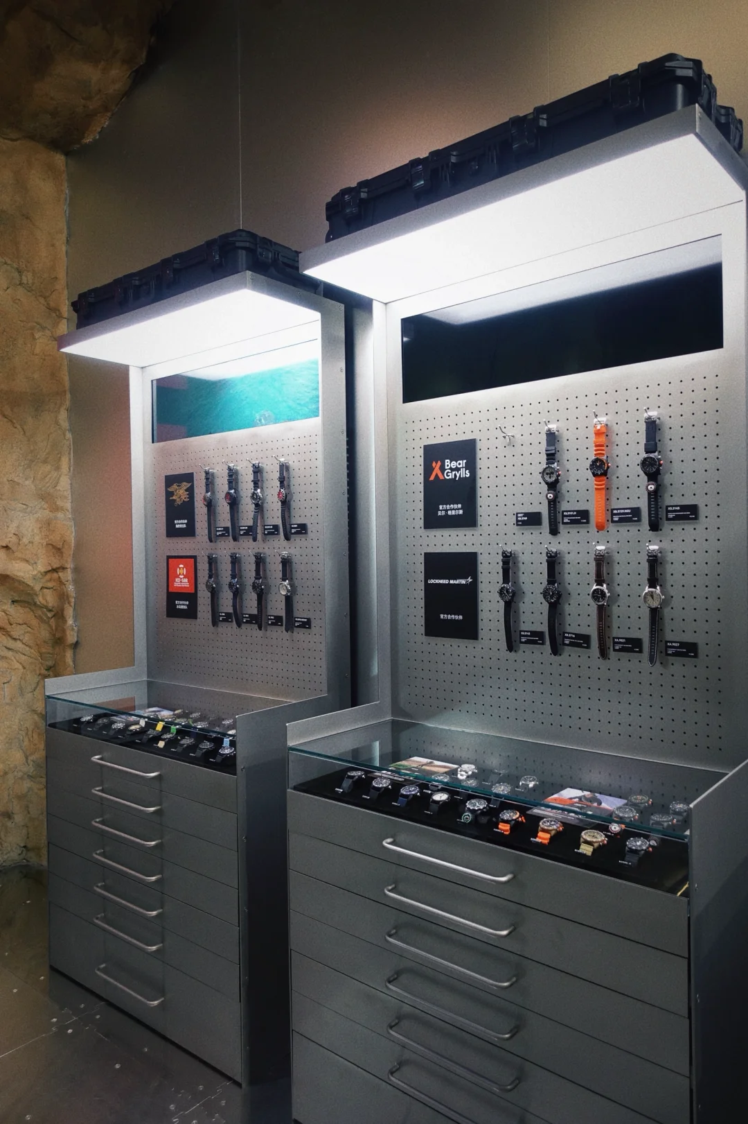 店铺设计超带感!粗粝岩石墙+暗调灯光,配上贝爷《荒野求生》BGM,试表瞬间代入绝地冒险模式!