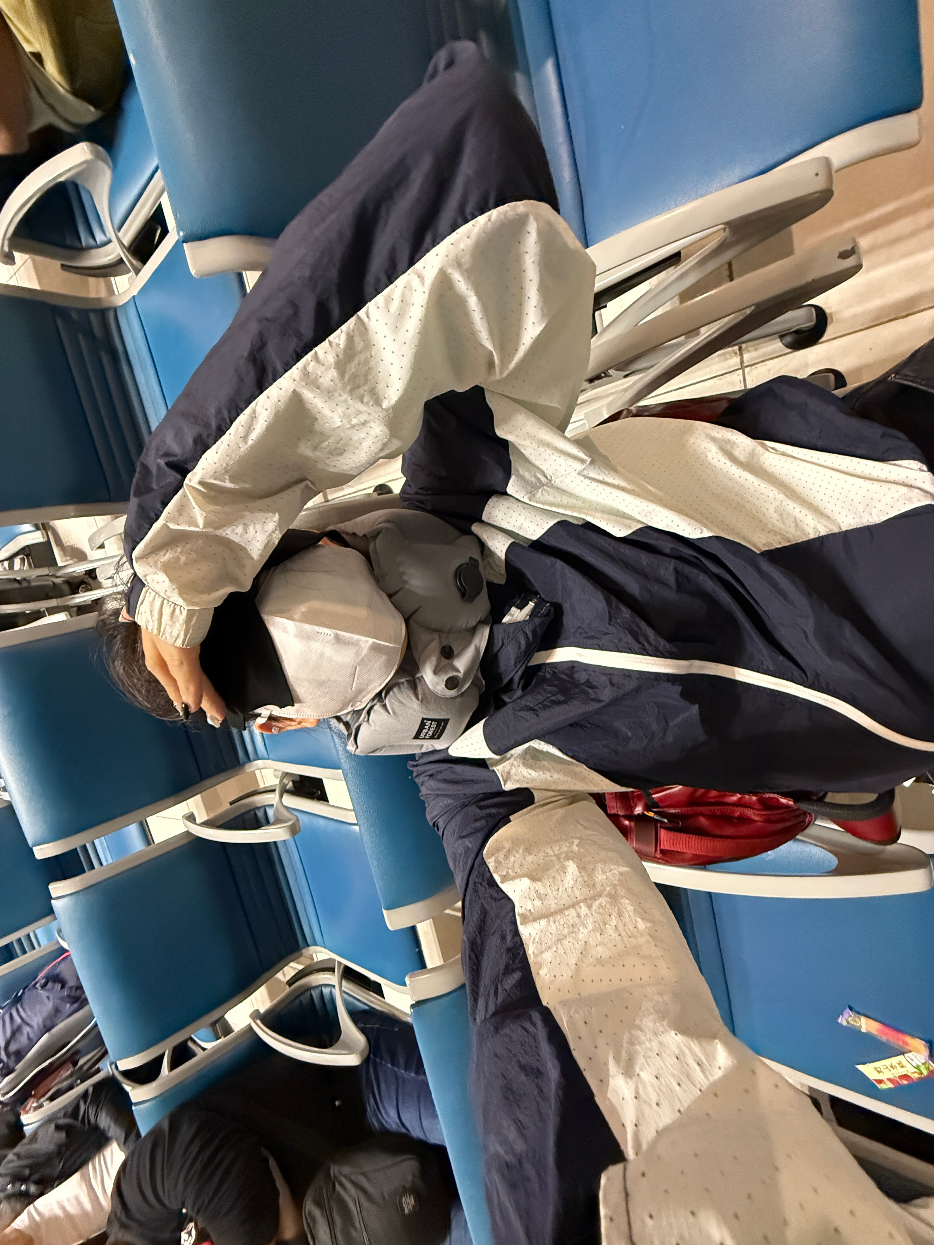 早~在机场的椅子上蜷了一晚上[泪奔]