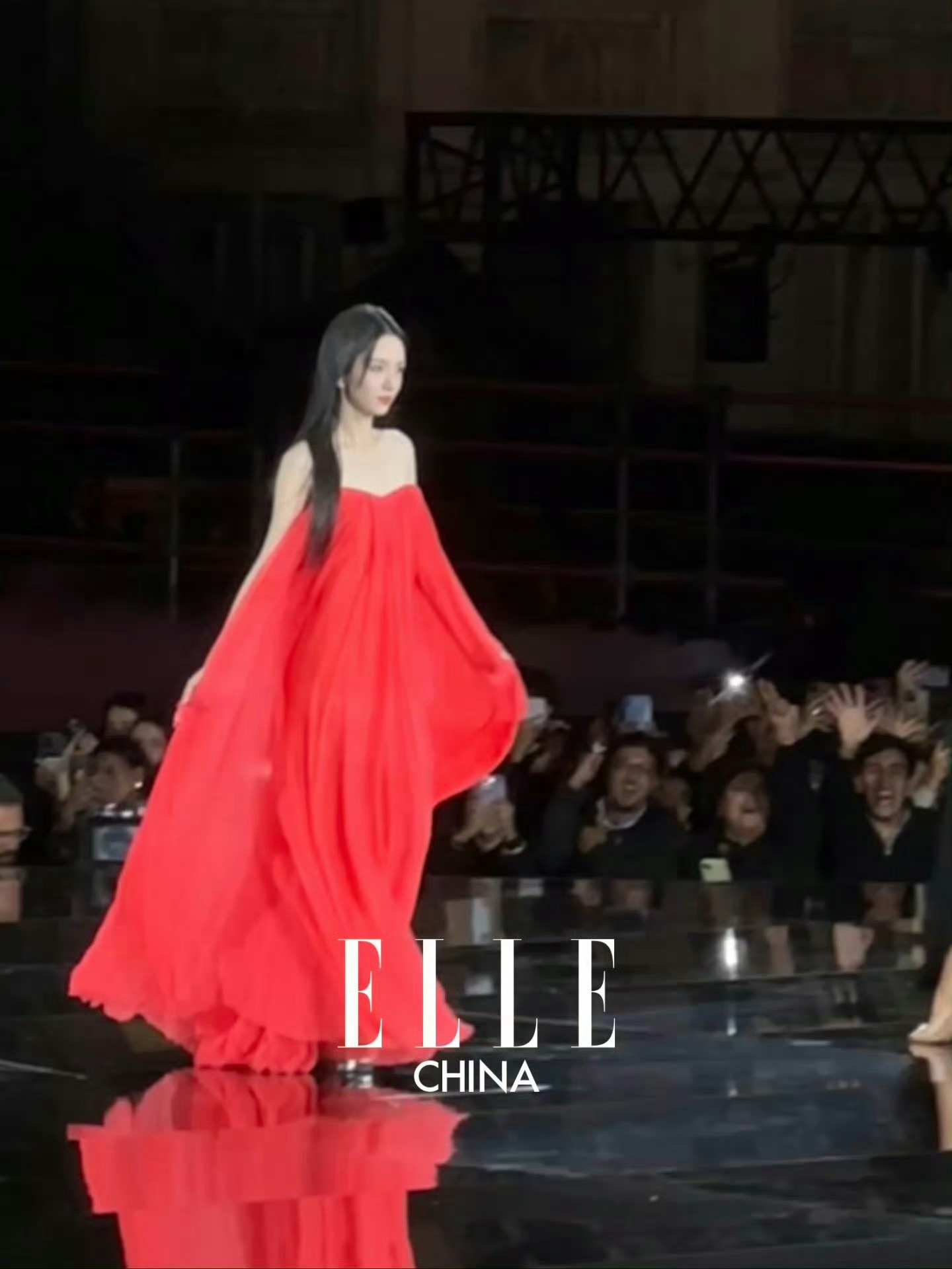 周也走秀周也扛住了G社镜头周也时装周走秀路透🈶!一袭红裙,wink、抛飞吻、转
