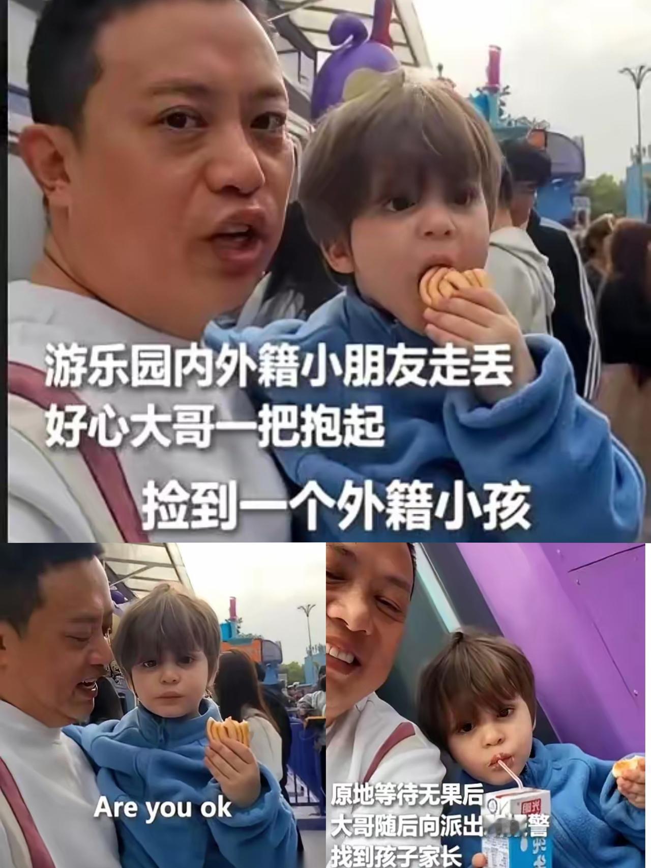 这事儿都火到人民日报啦!一个外国小娃在义乌游乐园丢了,大哥捡到后,先用英语问娃,没得到回应,瞬间开启中国式带娃——投喂!面包牛奶往娃嘴里塞,小家伙吃得超香。 等半天没人来,这位大哥果断报警。警察那流程叫一个熟练,带娃回所里,玩具、温水安排上,监控也调起来。孩子父母是巴勒斯坦夫妇,在异国丢孩子,那心情简直绝望。 网友说在中国,没人贩子孩子就丢不了,虽有点绝对,可这安全感哪来的?是一个个普通人用善良和本能,铸就了这份安心。这种“多管闲事”的默契,太让人暖心。你身边有类似体现这种温暖的事儿不?快来聊聊。