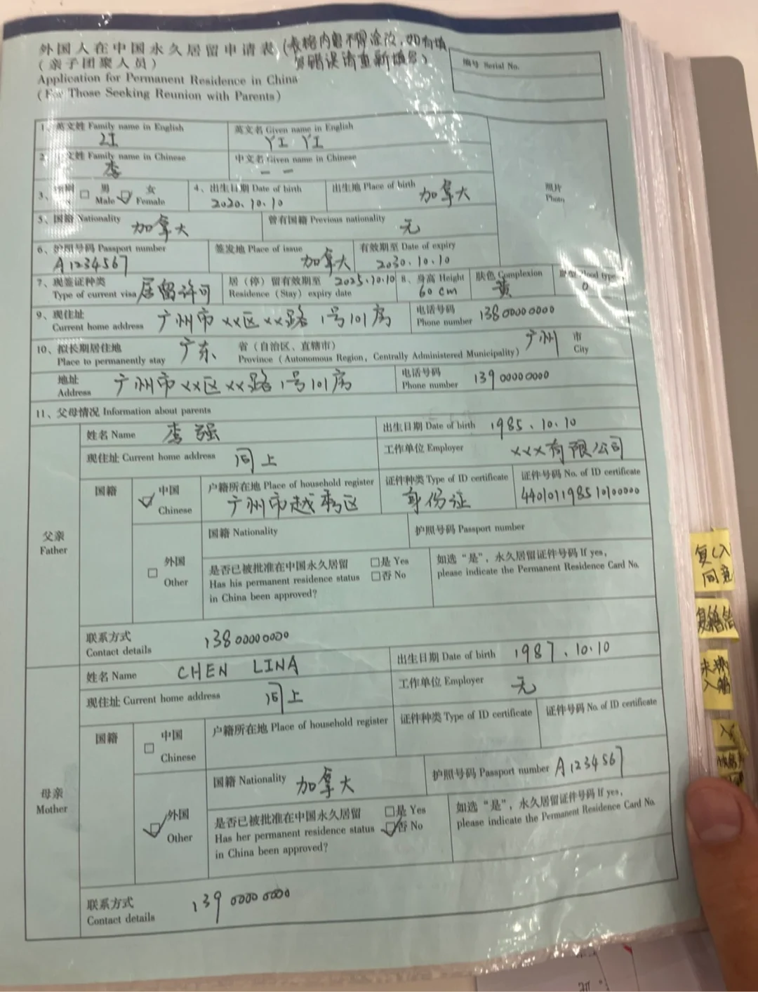 - 审批通过后,需带父母一方到出入境管理部门办理居留证录入拍照