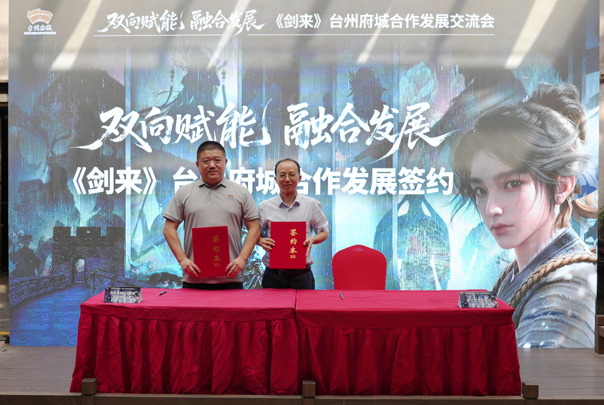 会上,浙江文艺出版社和台州府城文化旅游发展有限公司共同签署了关于《剑来》IP合作的框架协议。
