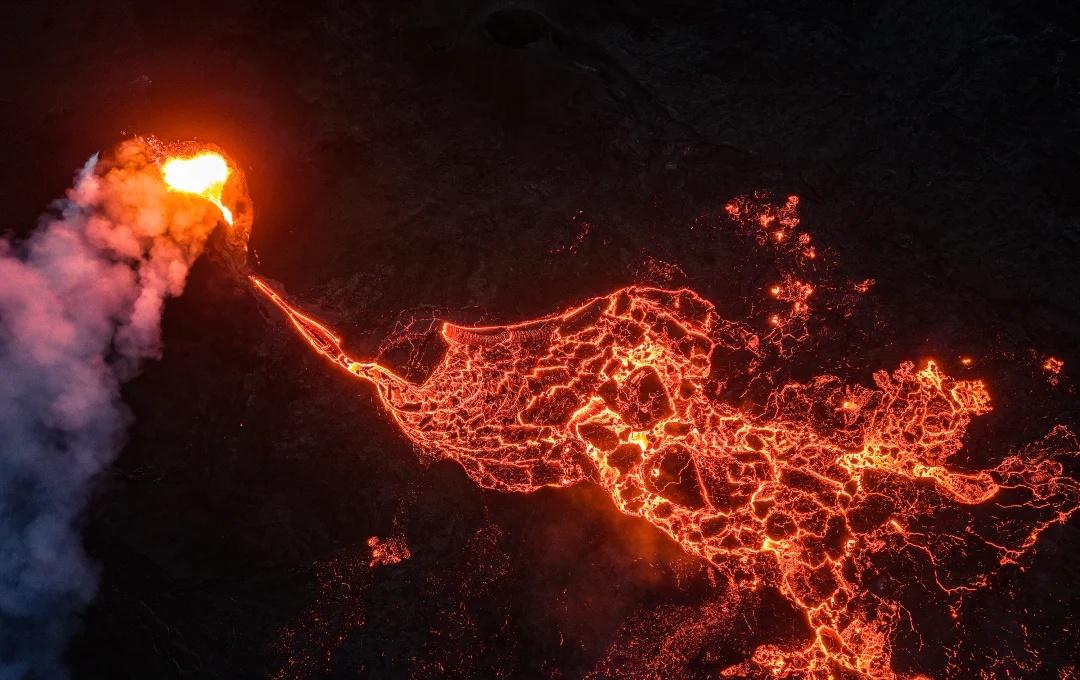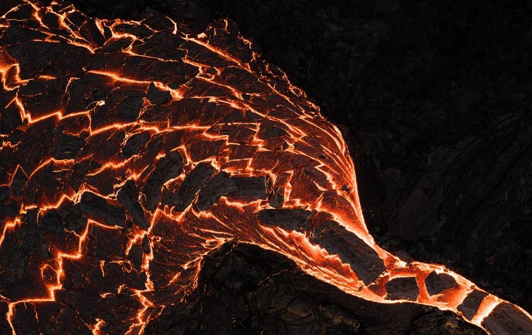 地球在燃烧!冰岛火山喷发现场曝光 站在火山脚下,看熔岩奔腾而下, 那一刻,仿佛世界都安静了。 如果你也来冰岛,一定要把火山列入清单, 因为它会给你带来一次永生难忘的震撼体验• 火山 冰岛 冰岛火山 航拍 自然
