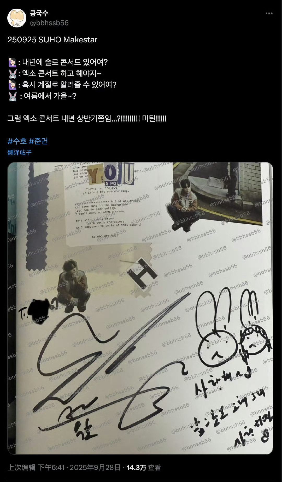 EXO将明年夏天举办演唱会SUHO剧透EXO六巡夏天开始明年夏天!最好是真的s