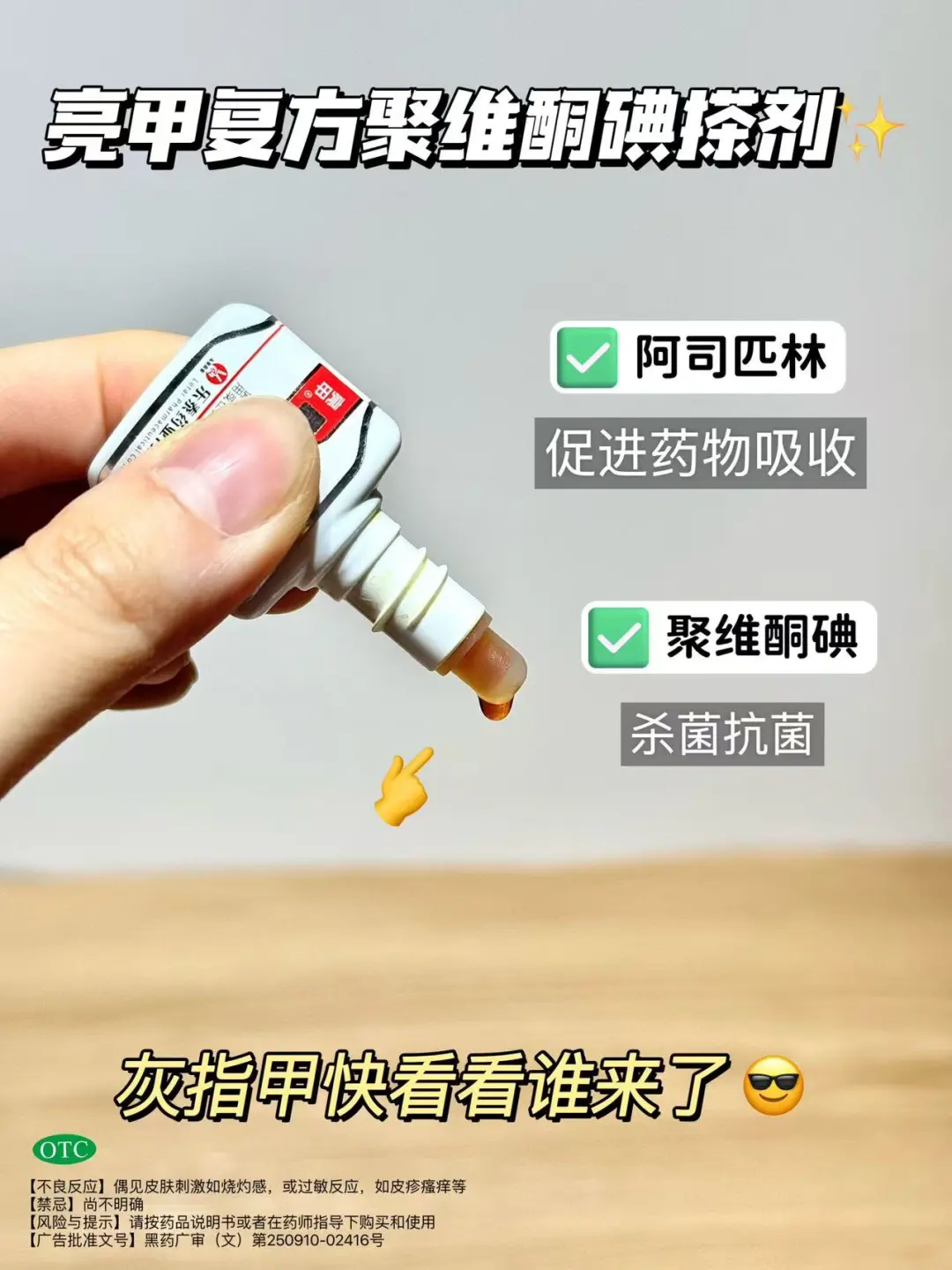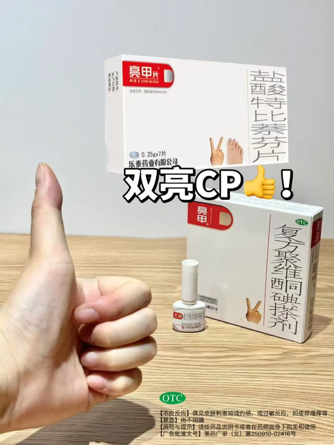 “得了灰指甲,一个传染俩,问我怎么办,马上用亮甲”