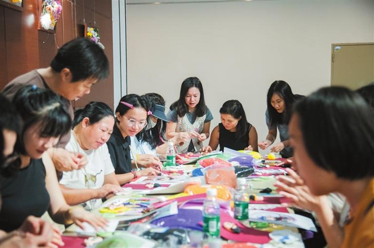 在“好汉人像”手作坊活动中,美术老师指导市民用超轻黏土制作水浒好汉人像。
