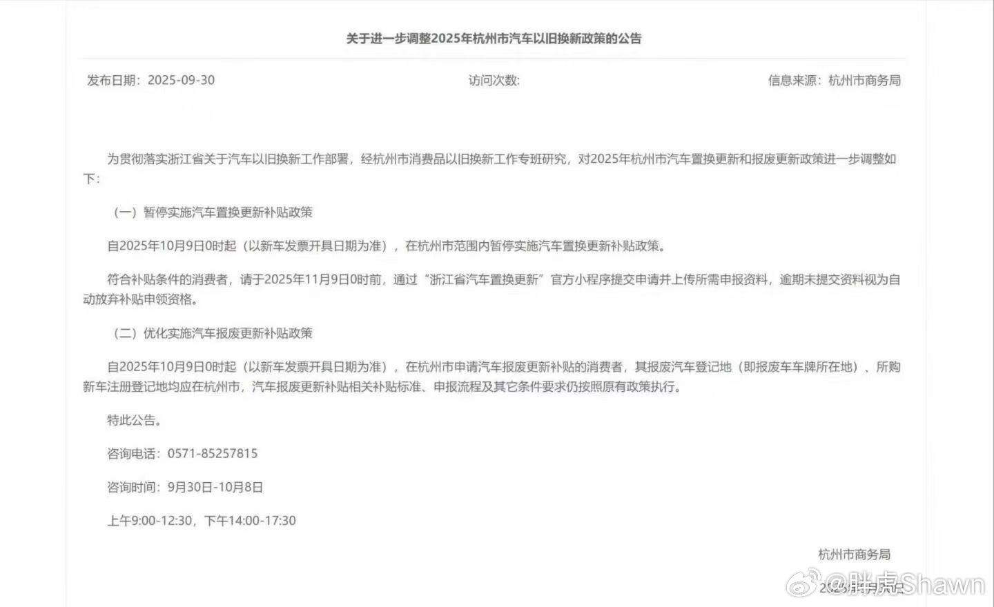 杭州的置换补贴,也要结束了