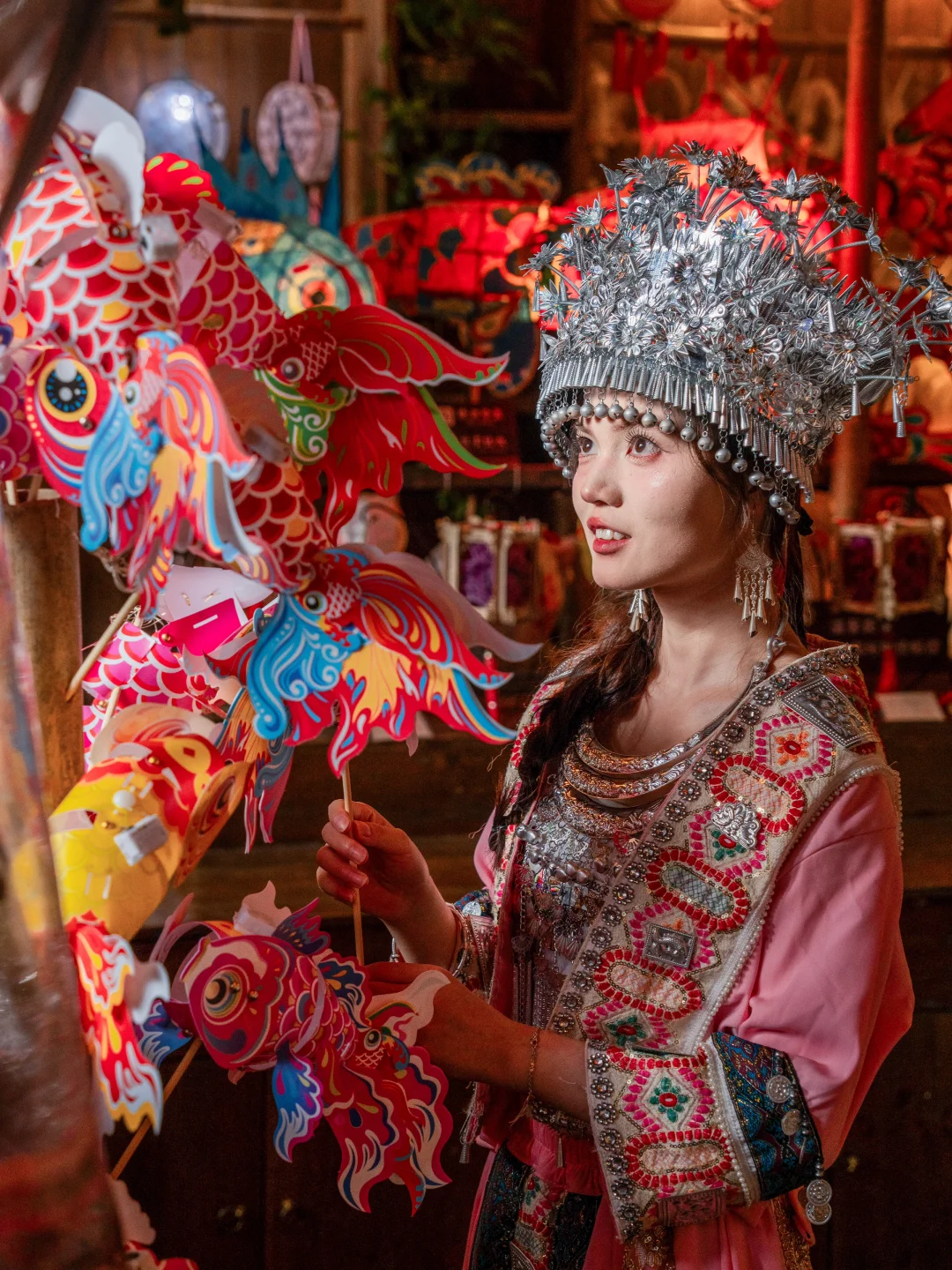 💌织蓝街:换身苗族阿妹服饰👘就能 get 于文文的同款~而且高低错落的街景自带故事感📖,随手拍都是电影帧🎬!