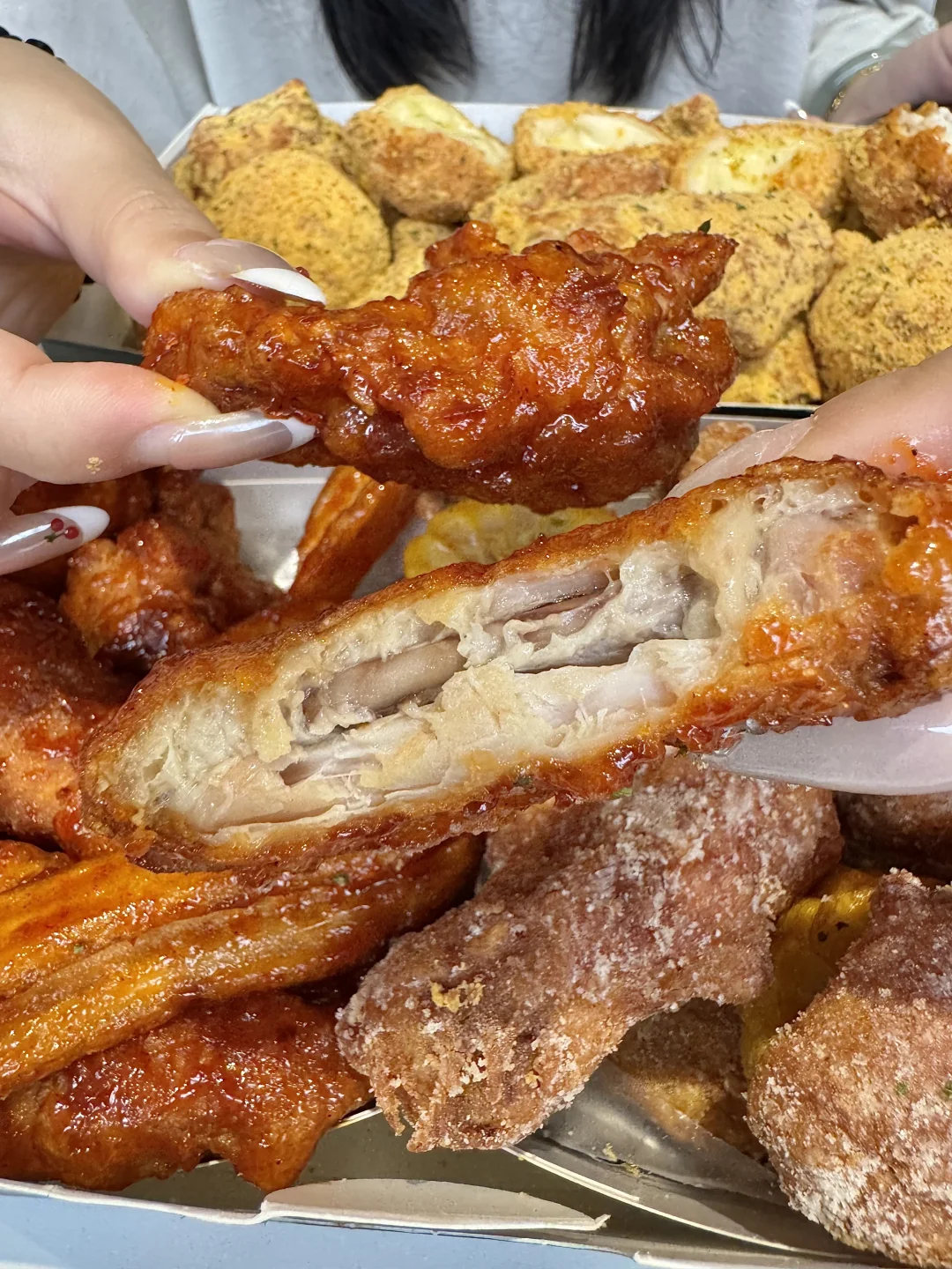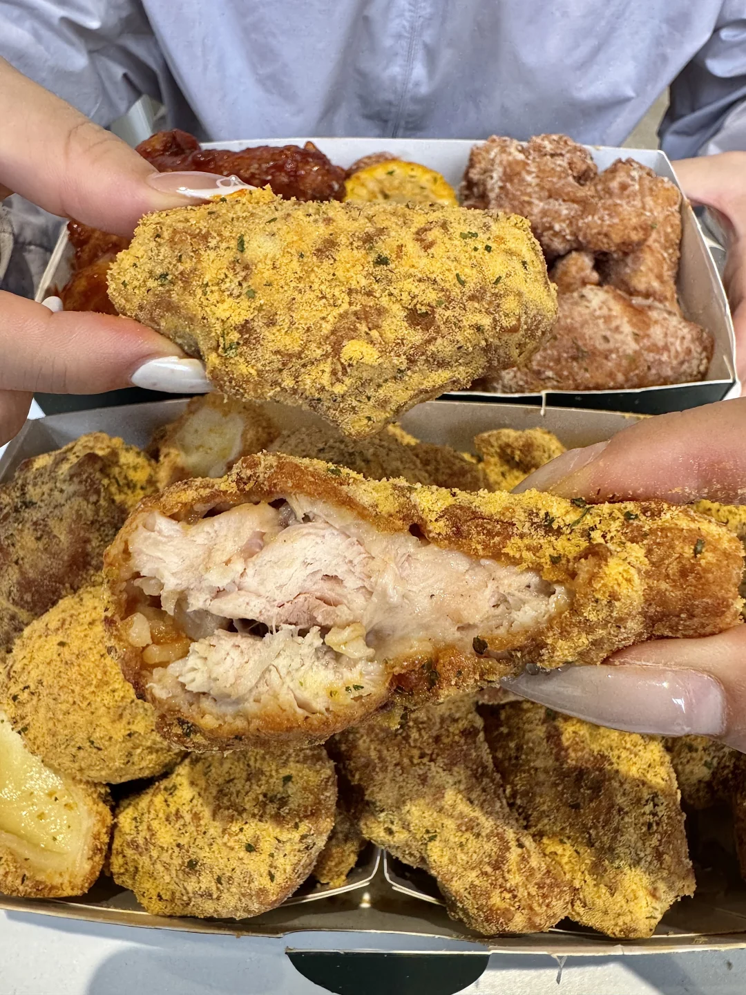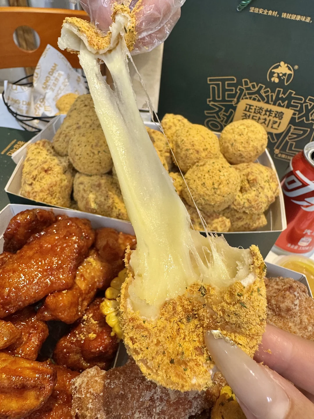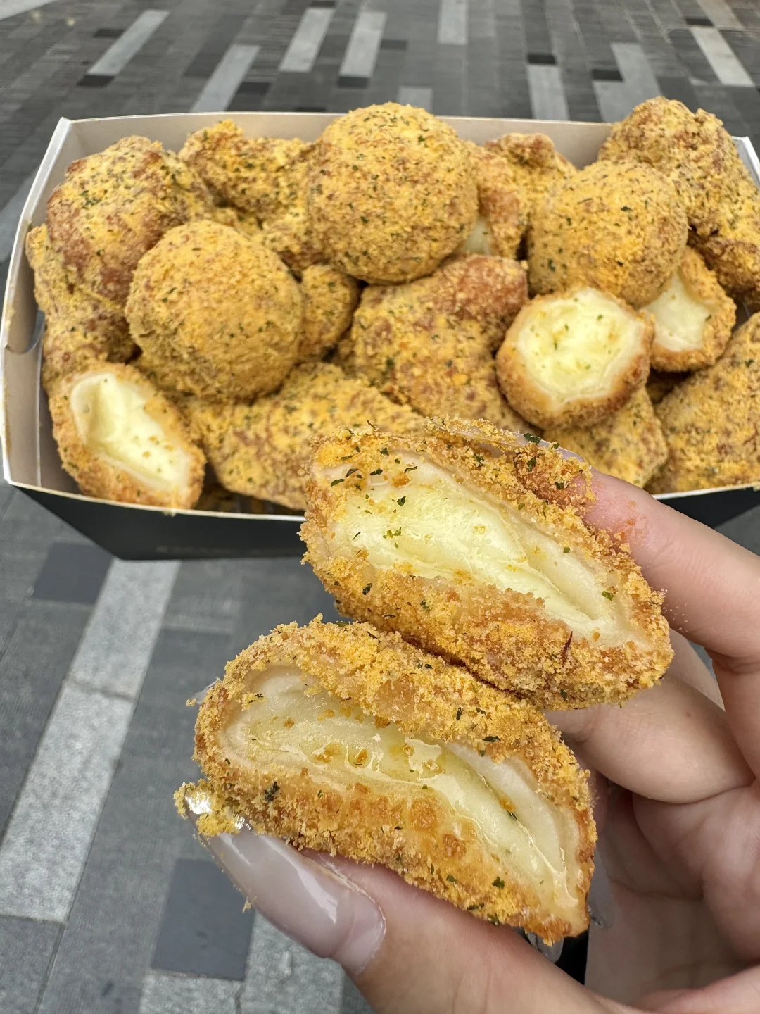 芝士脑袋真的抵抗不了一点😭雪花芝士味一整个裹满了芝士粉🤤芝士球可以拉好长丝!