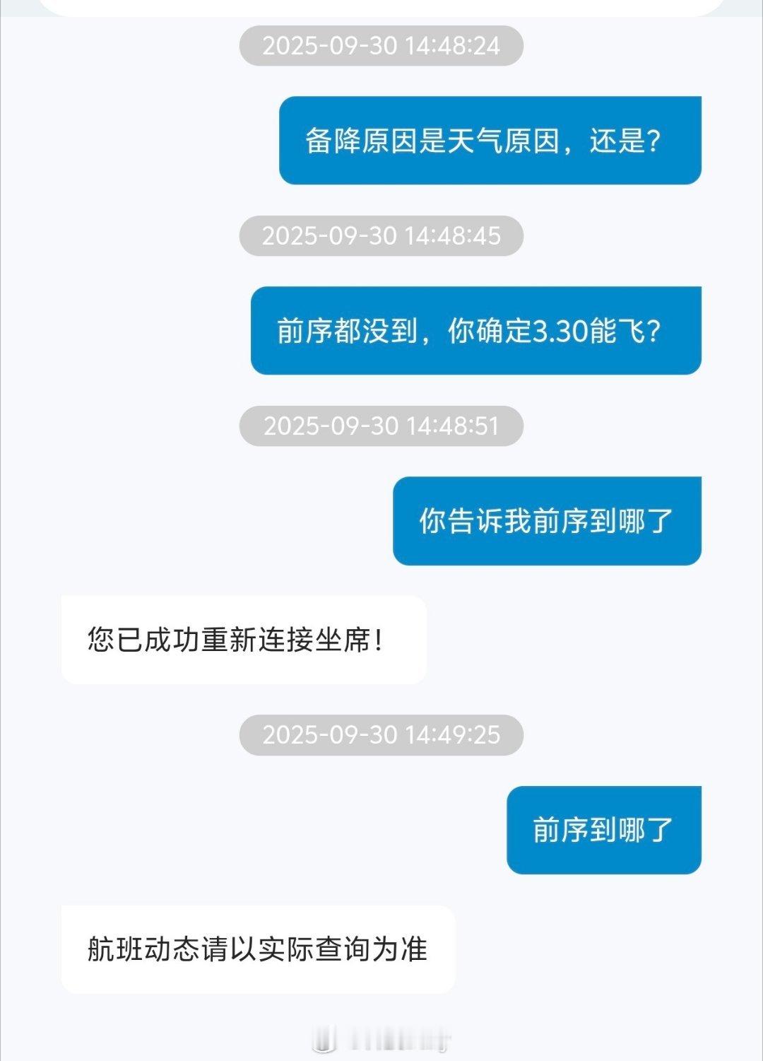 想要改签客服也磨磨唧唧,甚至我问前序航班情况,直接来了一句,以实际查询为准,这不是正确废话。