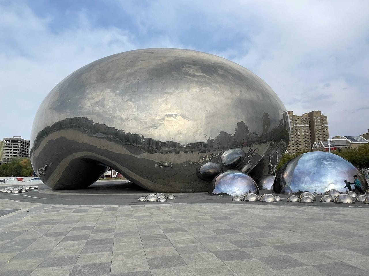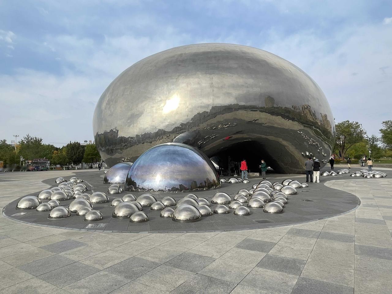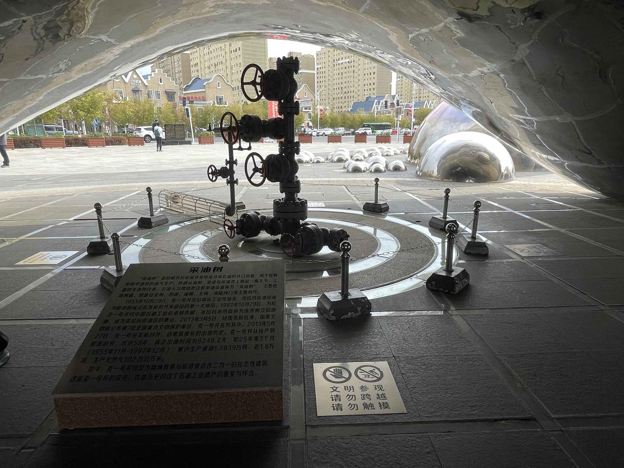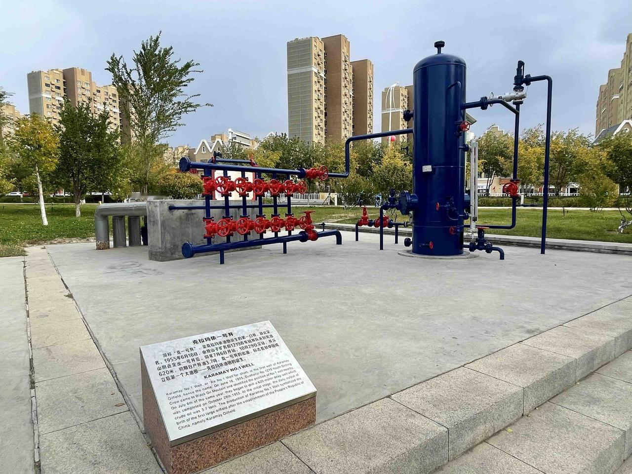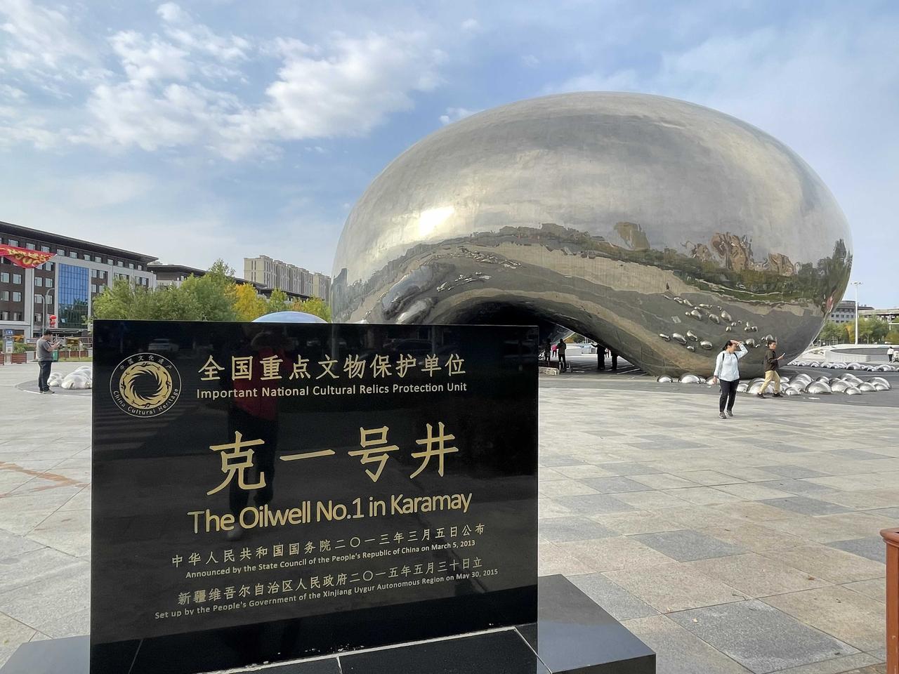 假日新疆(11)克拉玛依:黑油山景区出来,顺路打卡大油泡。大油泡为克一号井景区石油纪念广场上的一个主题雕塑,也是克拉玛依的一个地标!! 油泡很大,在阳光照射下反射着四周的建筑和蓝天,下面还聚拢着好多小油泡。克一号井原址就在大油泡下面,是新中国成立后的第一口油井,是克拉玛依石油文化的象征!别过,克拉玛依!!