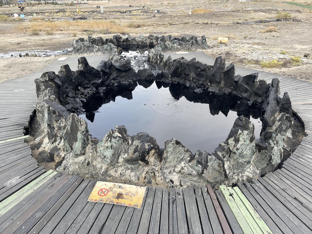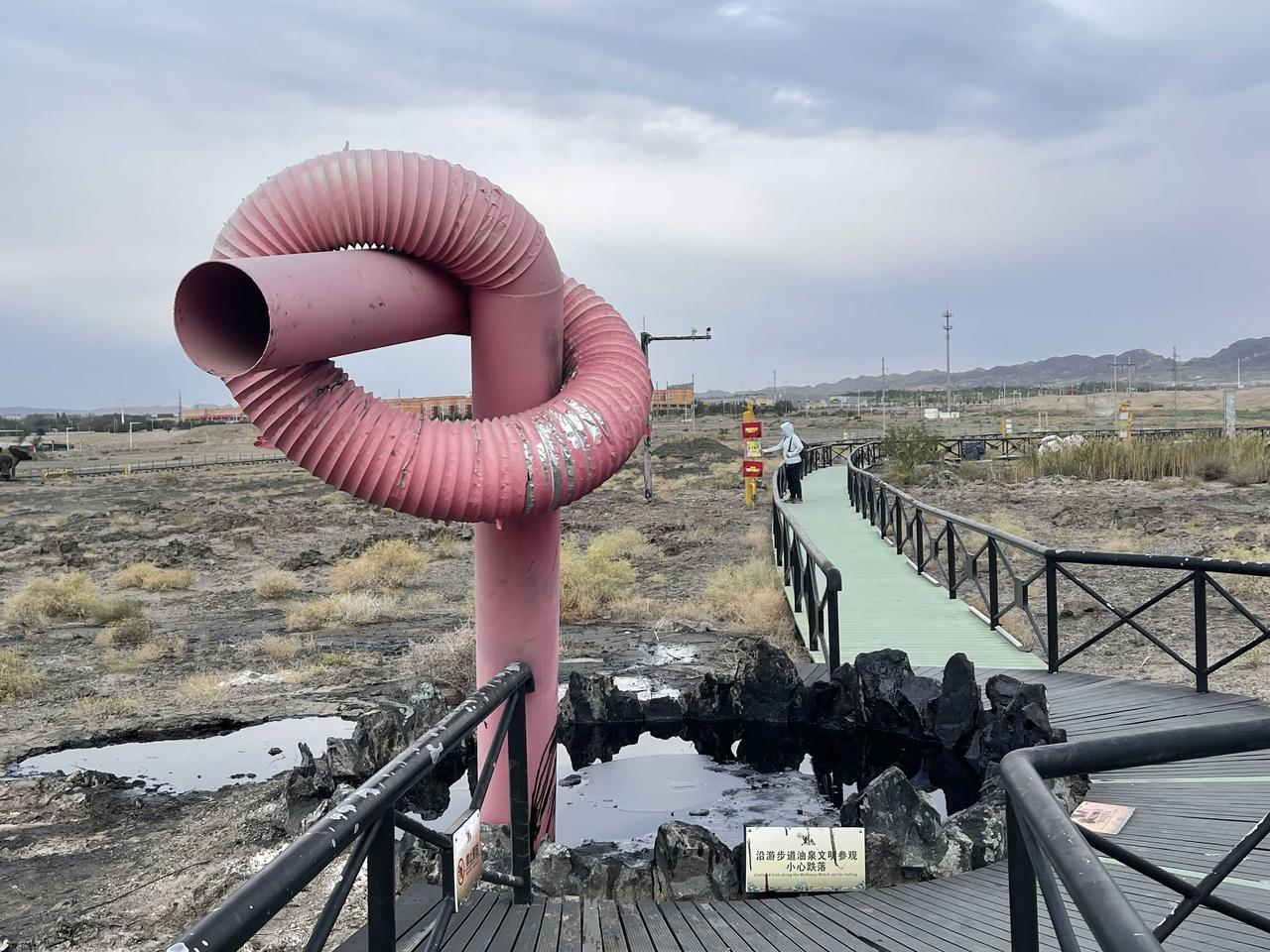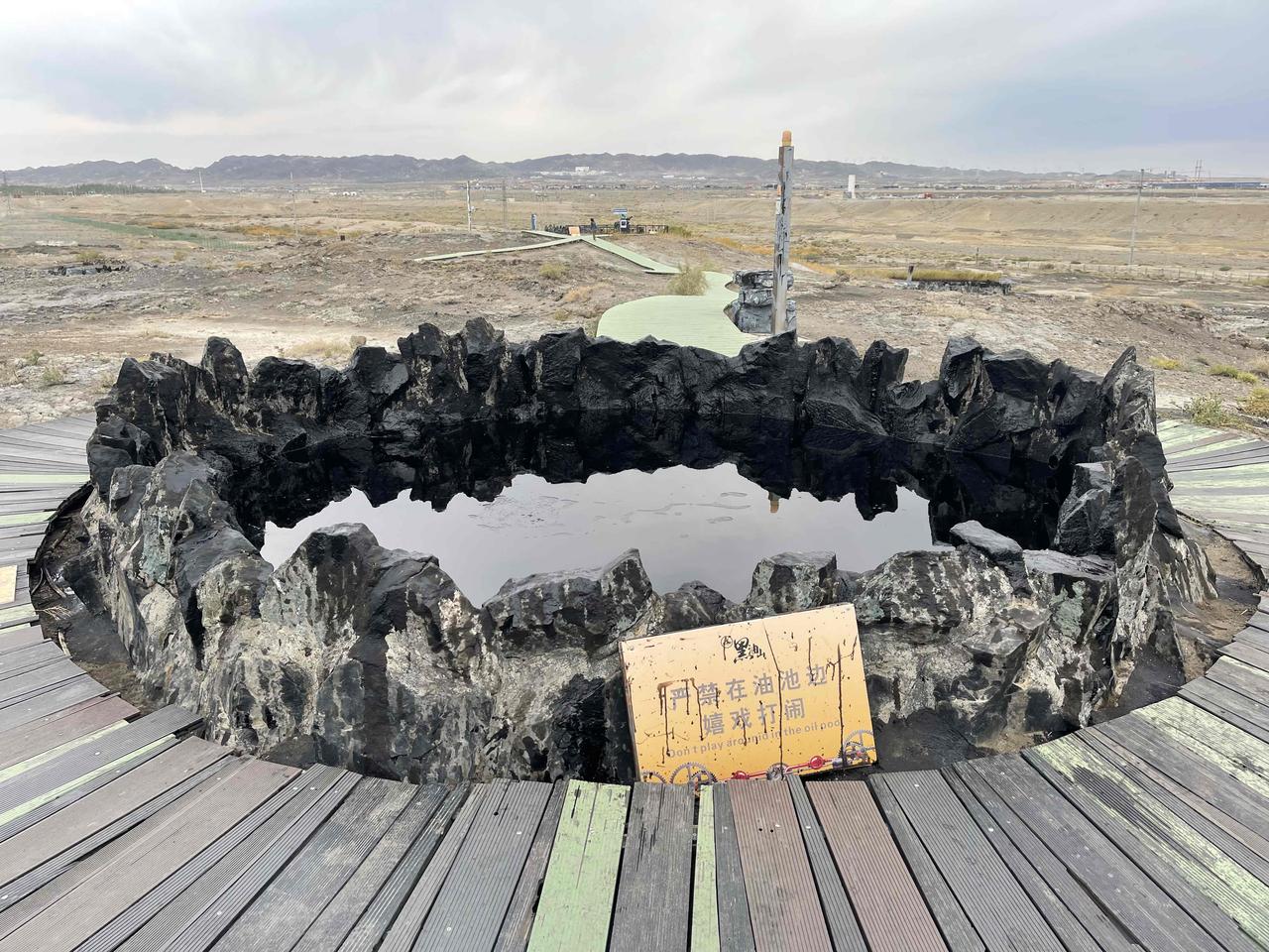 假日新疆(10)打卡黑油山:早餐后9:30出发,黑油山距市区很近!克拉玛依市,别称黑油山,中国著名的石油之城! 门票40元,天空飘过几滴雨,伴随着沙漠强劲的风!在黑油山上,第一次见到了真正的石油原油。景区不大,小油池星点分布,黑色石油涓涓外渗,伴随着科普标识! 造物主十分公平,戈壁沙滩下面是无尽的宝藏!克拉玛依,一个富的流油的地方!!