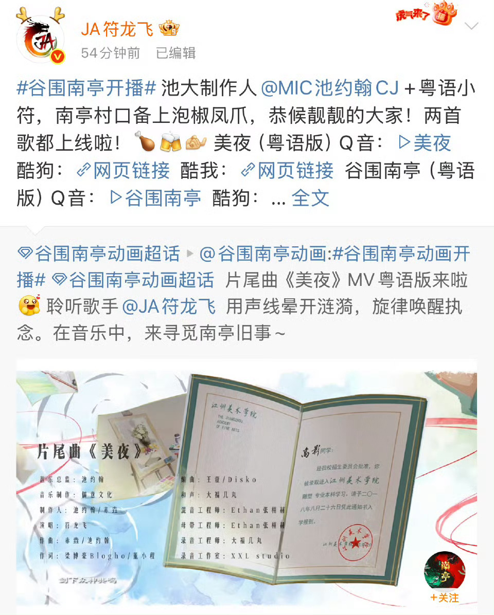 国漫配粤语还得看符龙飞 符龙飞的粤语一出来,《谷围南亭》的中式港风奇幻那味儿瞬间就有了!片头悬疑、片尾催泪,这声线太会拿捏情绪了,爱了爱了!