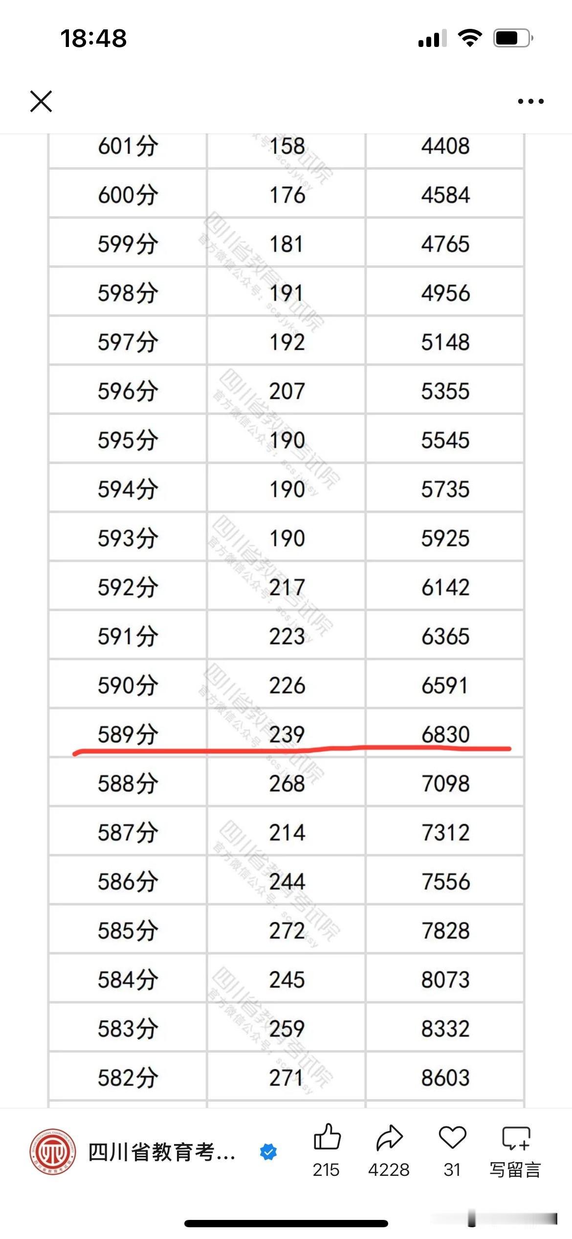 四川历史类考生,尘埃落定,总分589省位次6830,高中三年最好的成绩来自于高考,几次诊断考试最高就是561,高考总分竟然比平常高出了28分,确实是大考型选手,美中不足语文强项没有发挥好,估分130只考了113分,查分的时候我们两口子都没有在家,他查完后立即把成绩发给我了,和高考结束后一样的淡定,成绩不好不坏,心情不急不躁,我今晚可以好好睡觉了。四川高考位次 四川高考题 高考历史提分 四川高校分数 四川高考投档 四川高考放榜