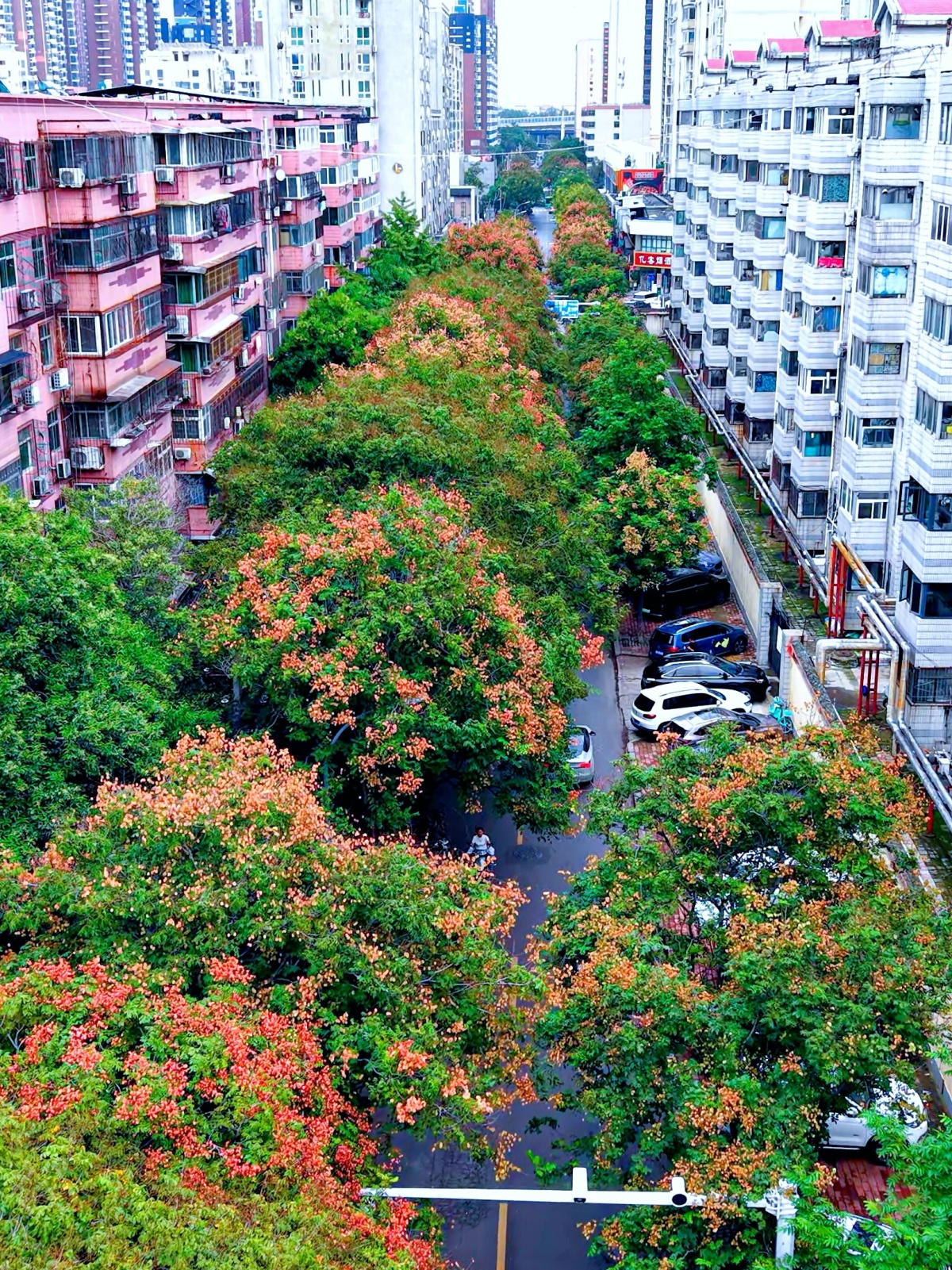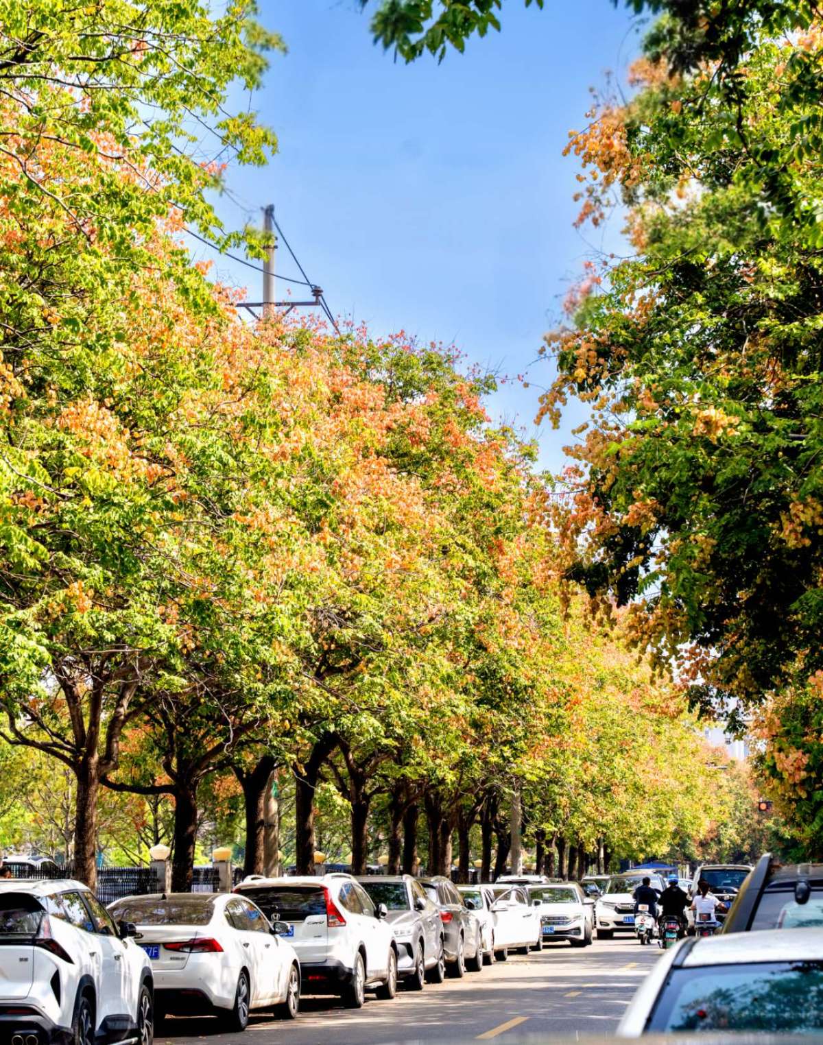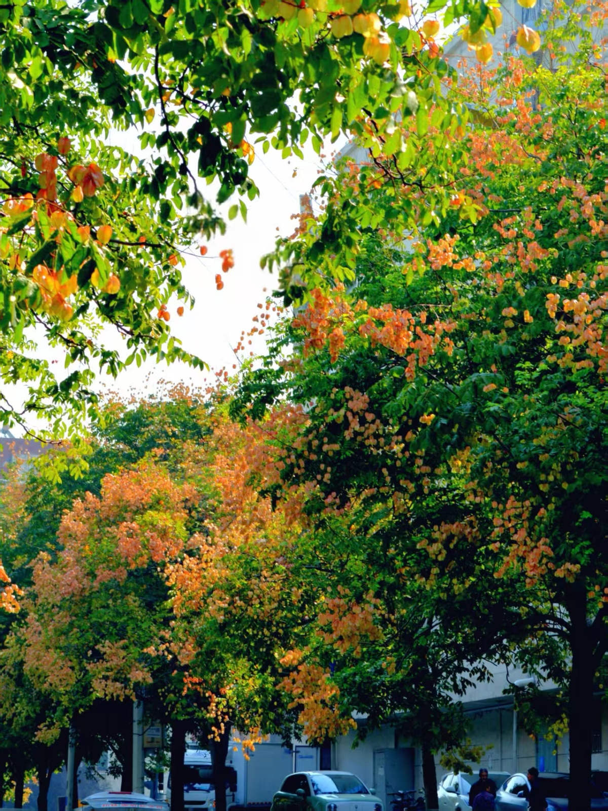 秋风吹过,郑州金水区的栾树成了街头最动人的景致。