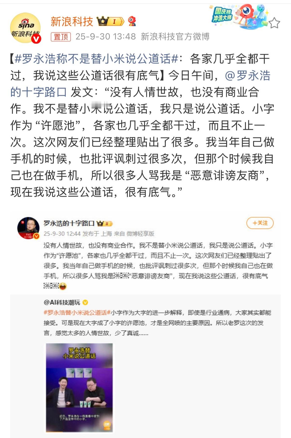 老罗不是在替小米说公道话,老罗本身就在说公道话。