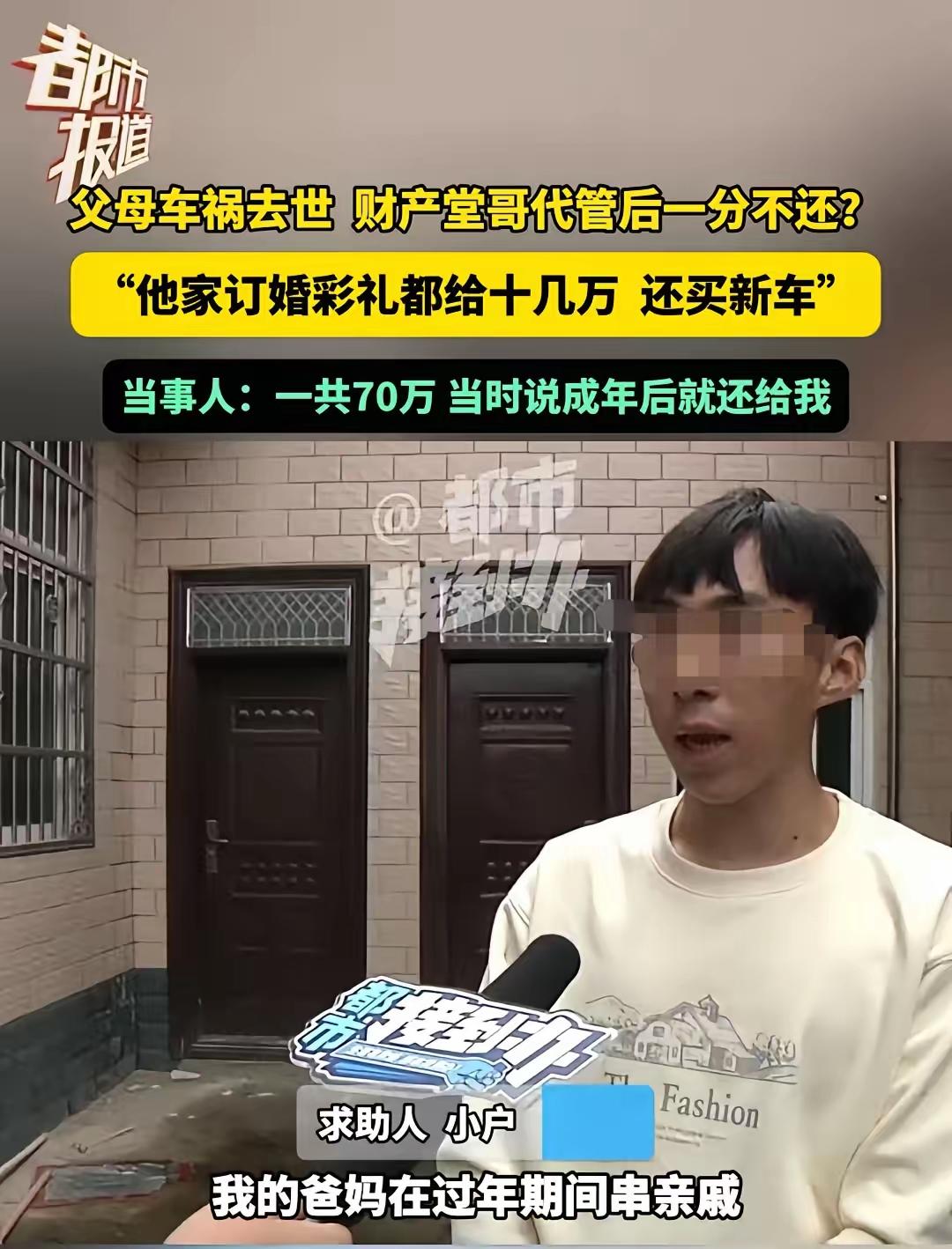 许昌,男子的父母离世,给他留下70万,堂哥主动帮他保管。男子大学毕业,想让堂哥扣
