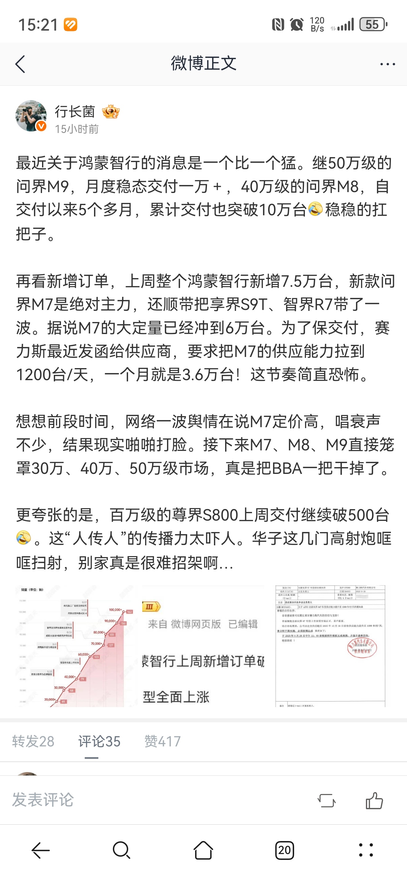 今天刚说完新款问界M7大定要冲破6万台,底下评论区还一堆人冷嘲热讽,结果下午战报直接来了:7天大定突破6万!赛力斯的股价怕不是又要起飞了[doge]