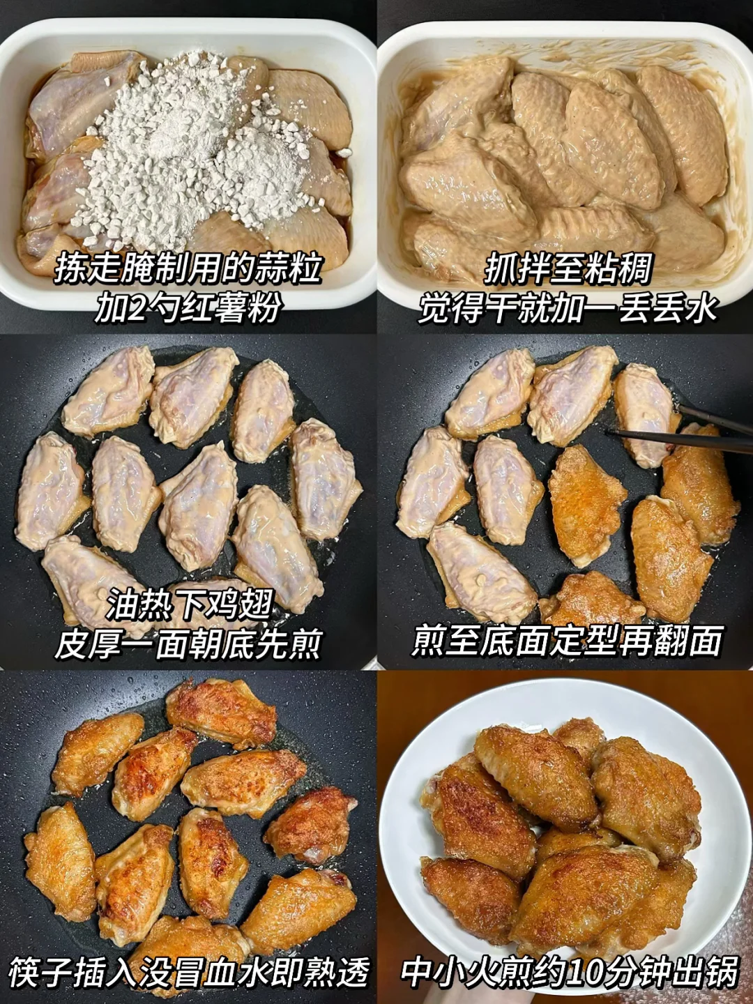 🔥全程中小火约10分钟,信我!这样煎出来的鸡翅外皮焦脆,但肉质嫩嫩的!真的非常好吃🤤!